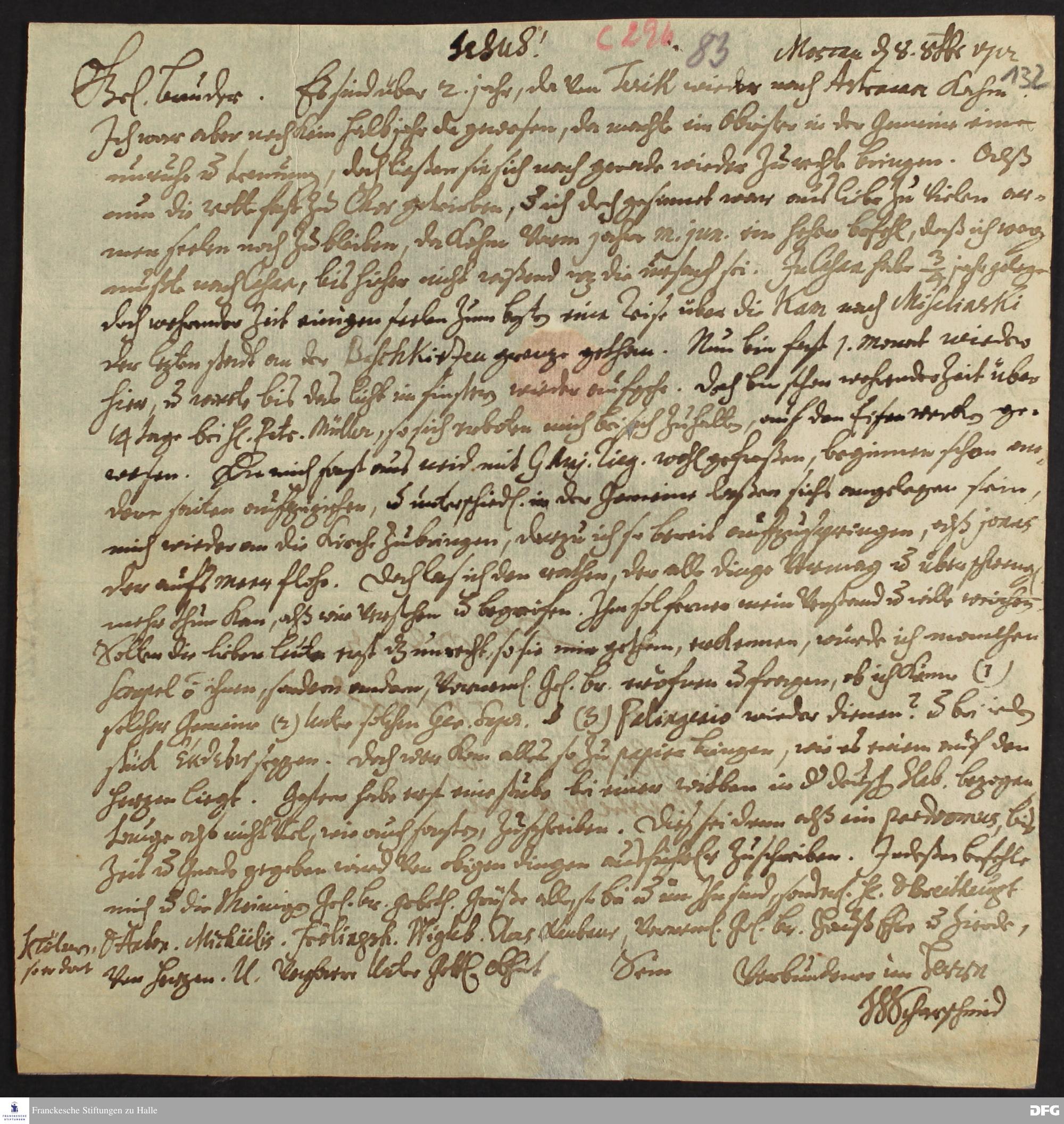 Brief von Justus Samuel Scharschmidt an August Hermann Francke.