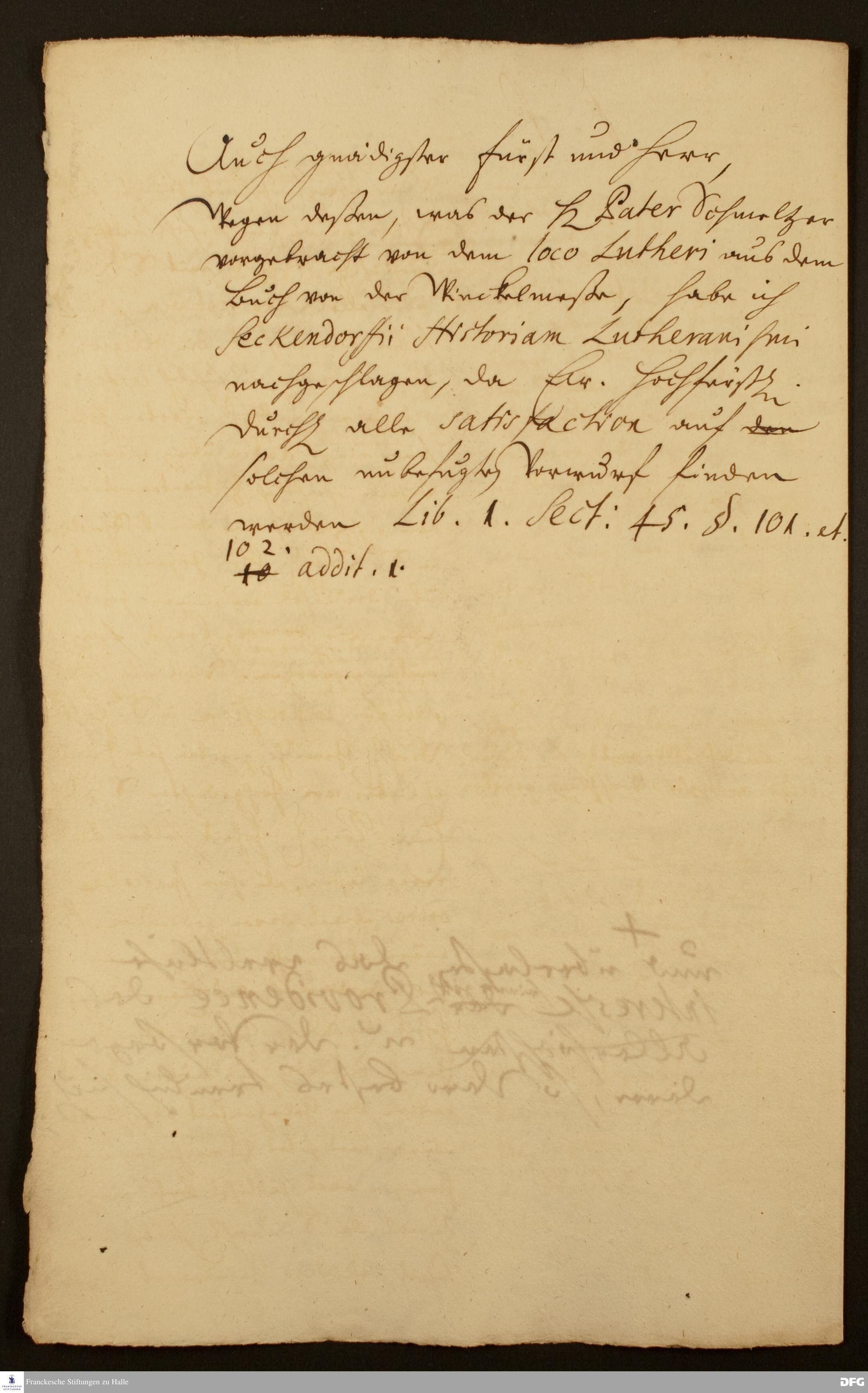 Brief von August Hermann Francke an Moritz Wilhelm v. Sachsen-Zeitz.