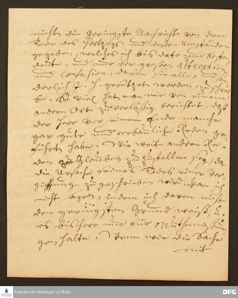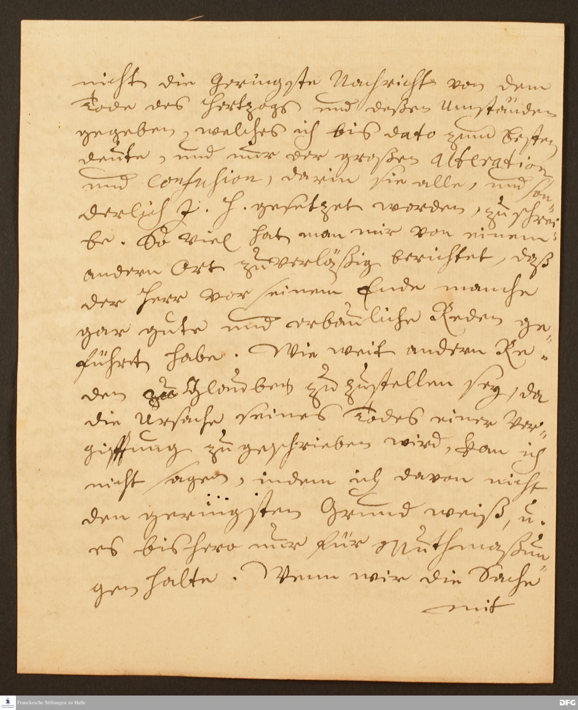Brief von August Hermann Francke an Johann Heinrich v. Griesheim.