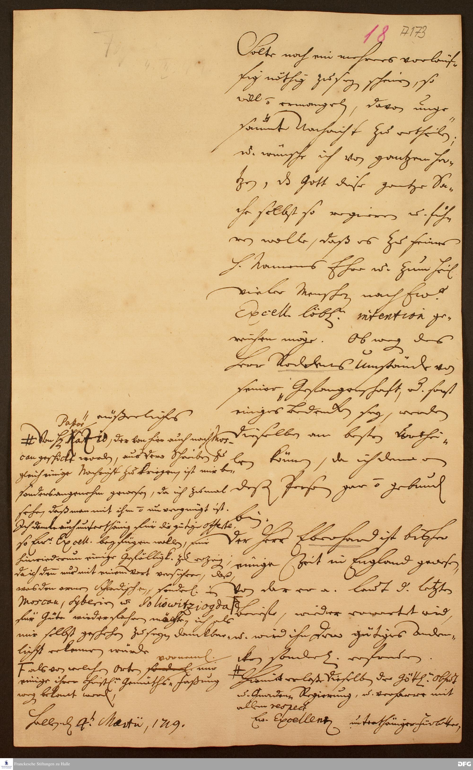 Brief von August Hermann Francke an Adam Weyde.