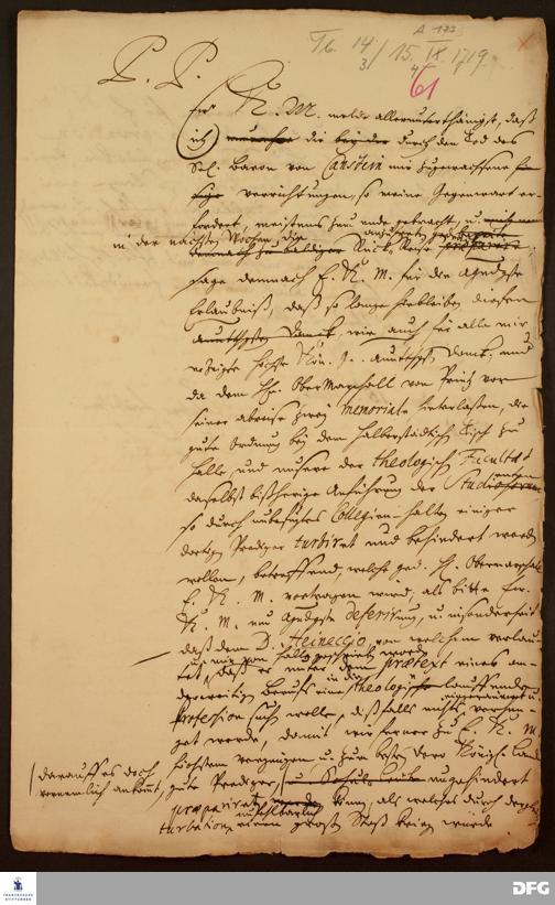 Brief von August Hermann Francke an Friedrich Wilhelm I., König in Preußen.