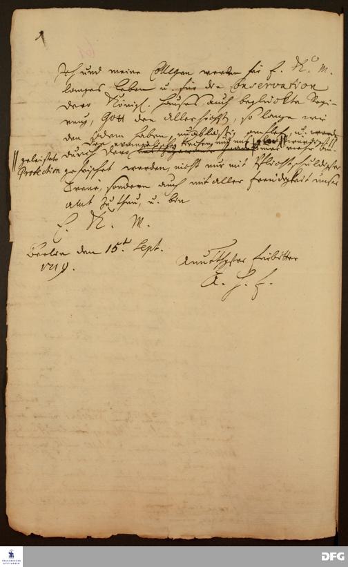 Brief von August Hermann Francke an Friedrich Wilhelm I., König in Preußen.