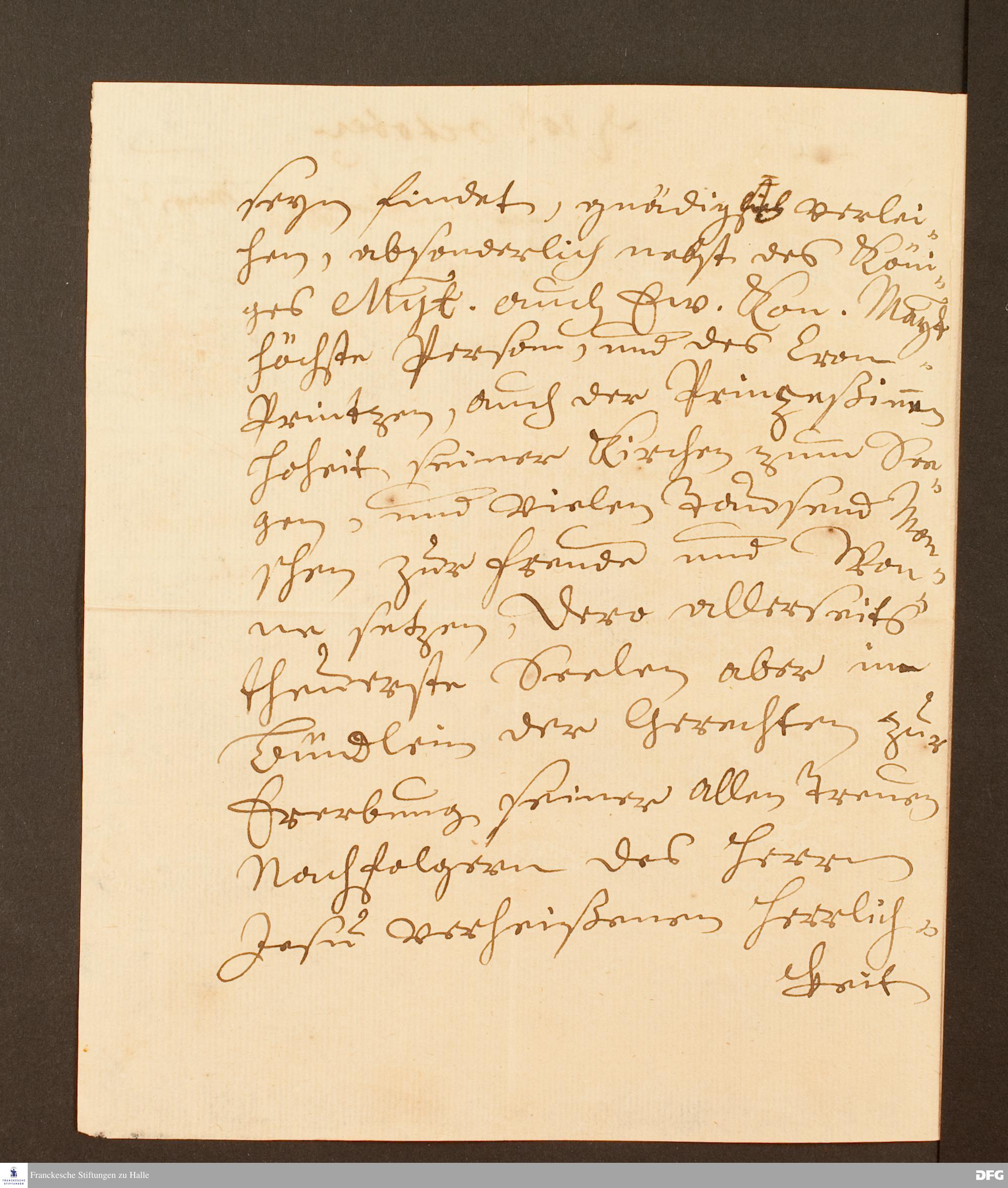 Brief von August Hermann Francke an Sophie Dorothea, Königin in Preußen.