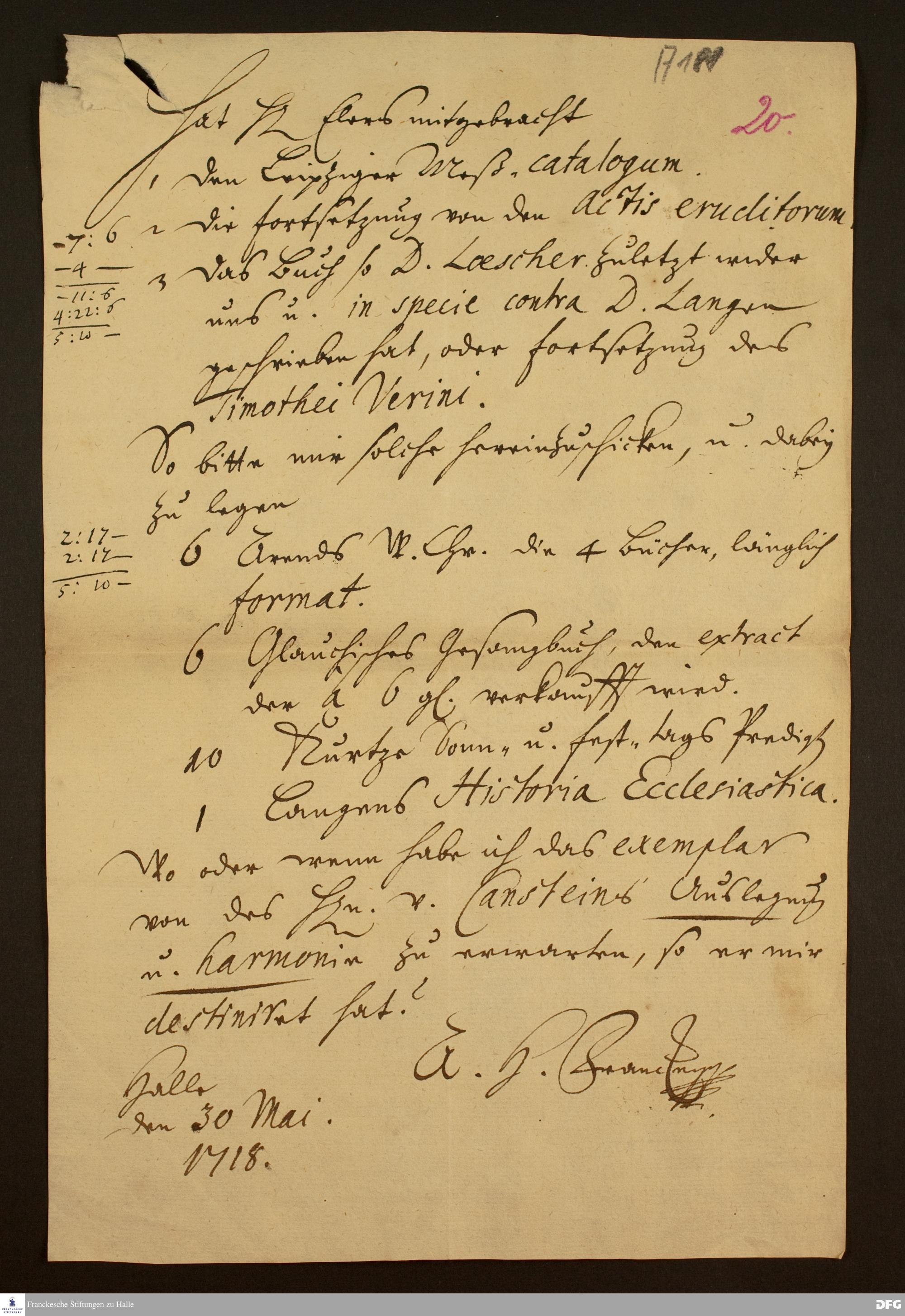Brief von August Hermann Francke an Heinrich Julius Elers.