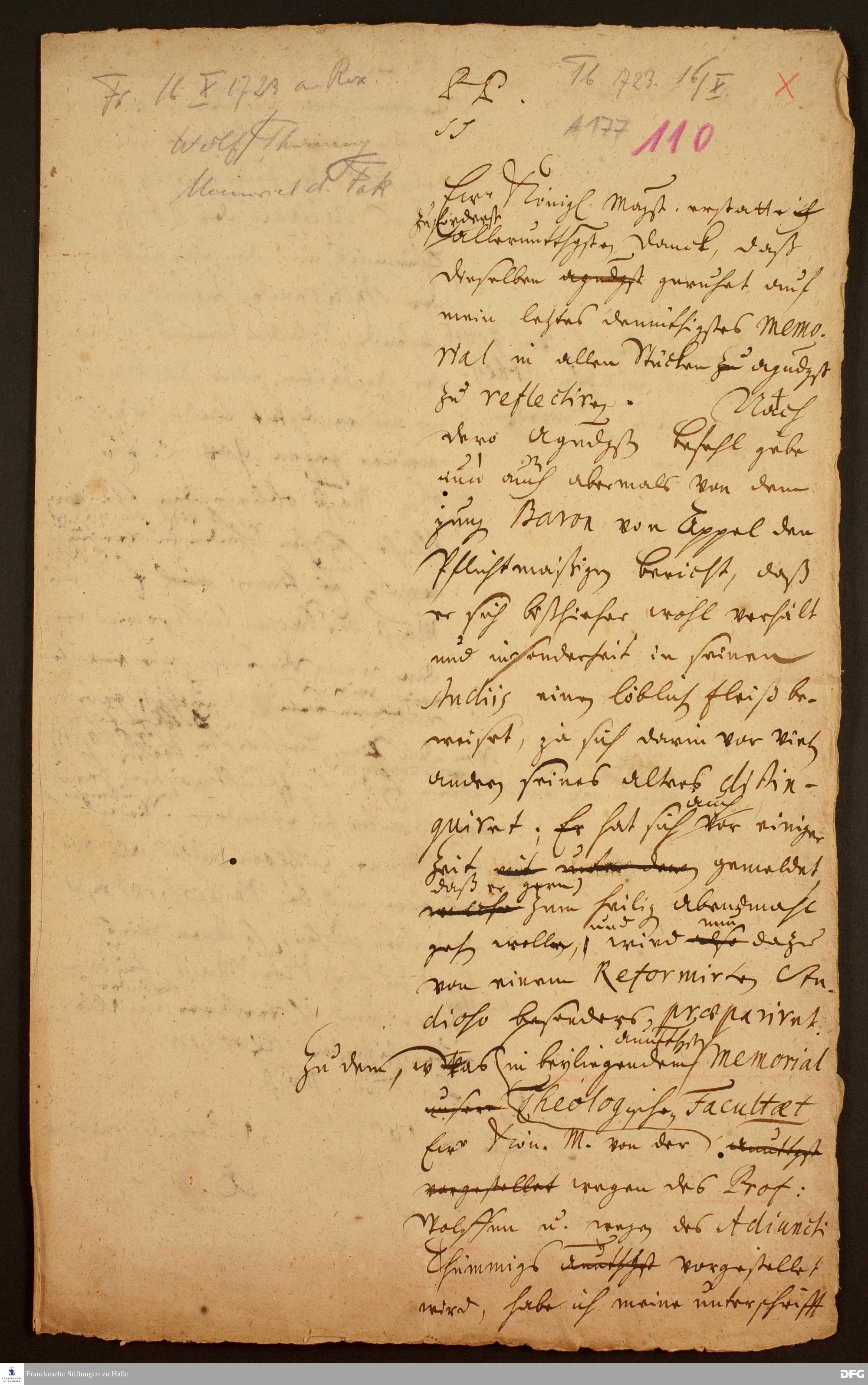 Brief von August Hermann Francke an Friedrich Wilhelm I., König in Preußen.