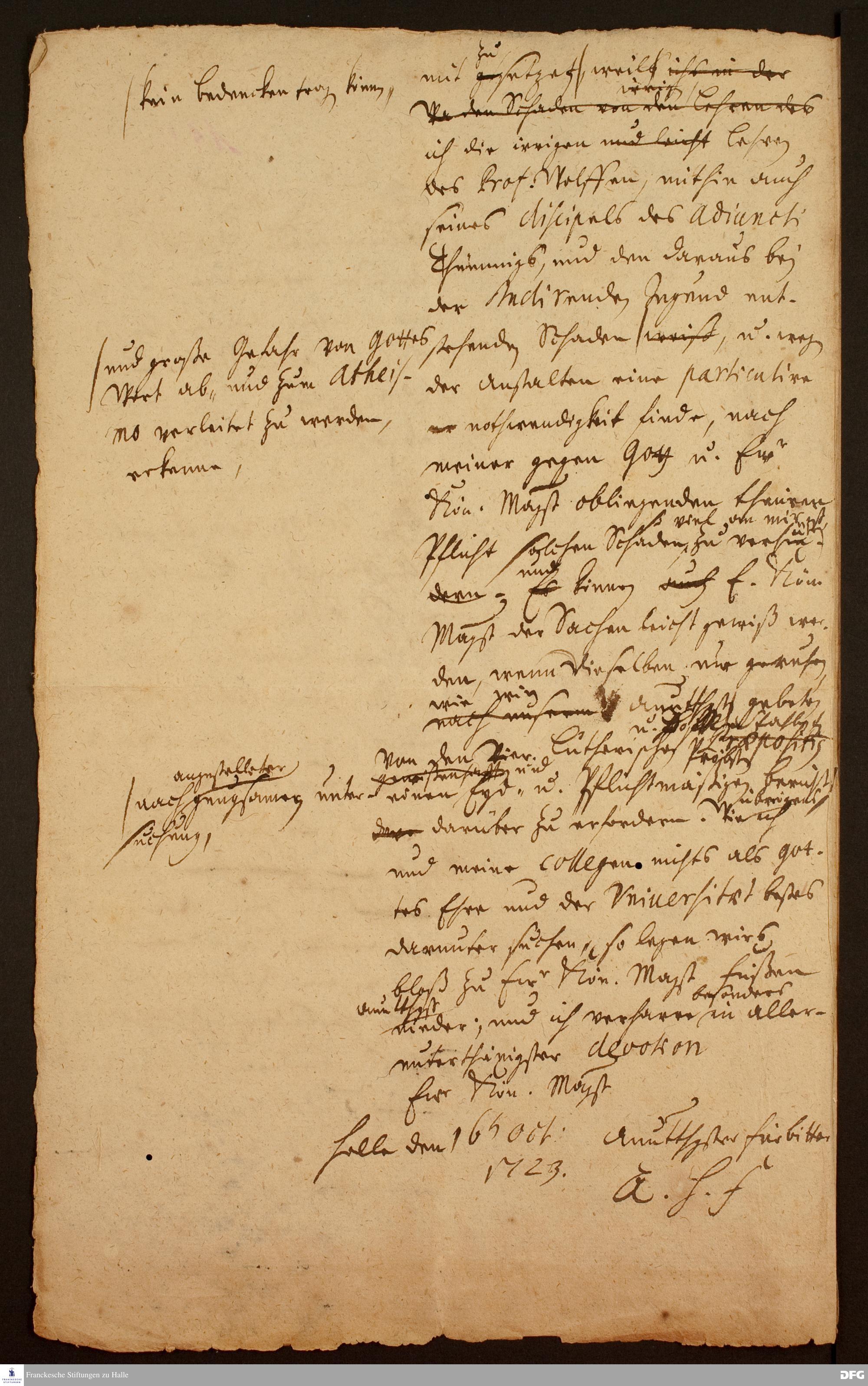 Brief von August Hermann Francke an Friedrich Wilhelm I., König in Preußen.