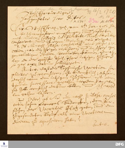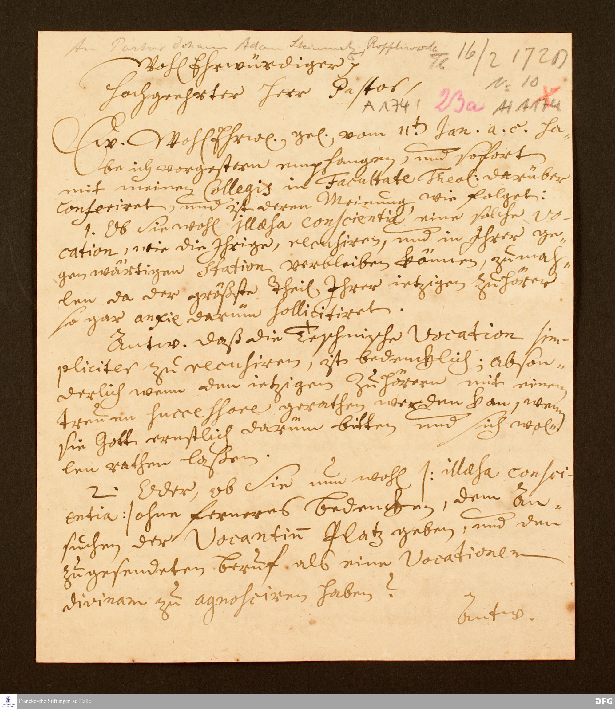 Brief von August Hermann Francke an Johann Adam Steinmetz.