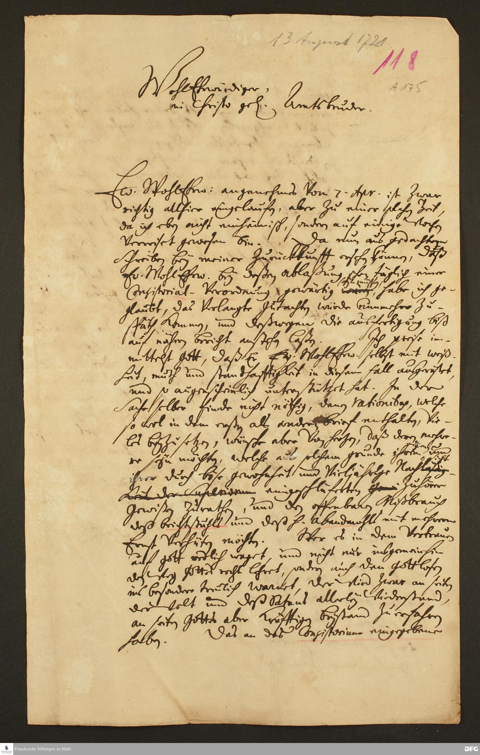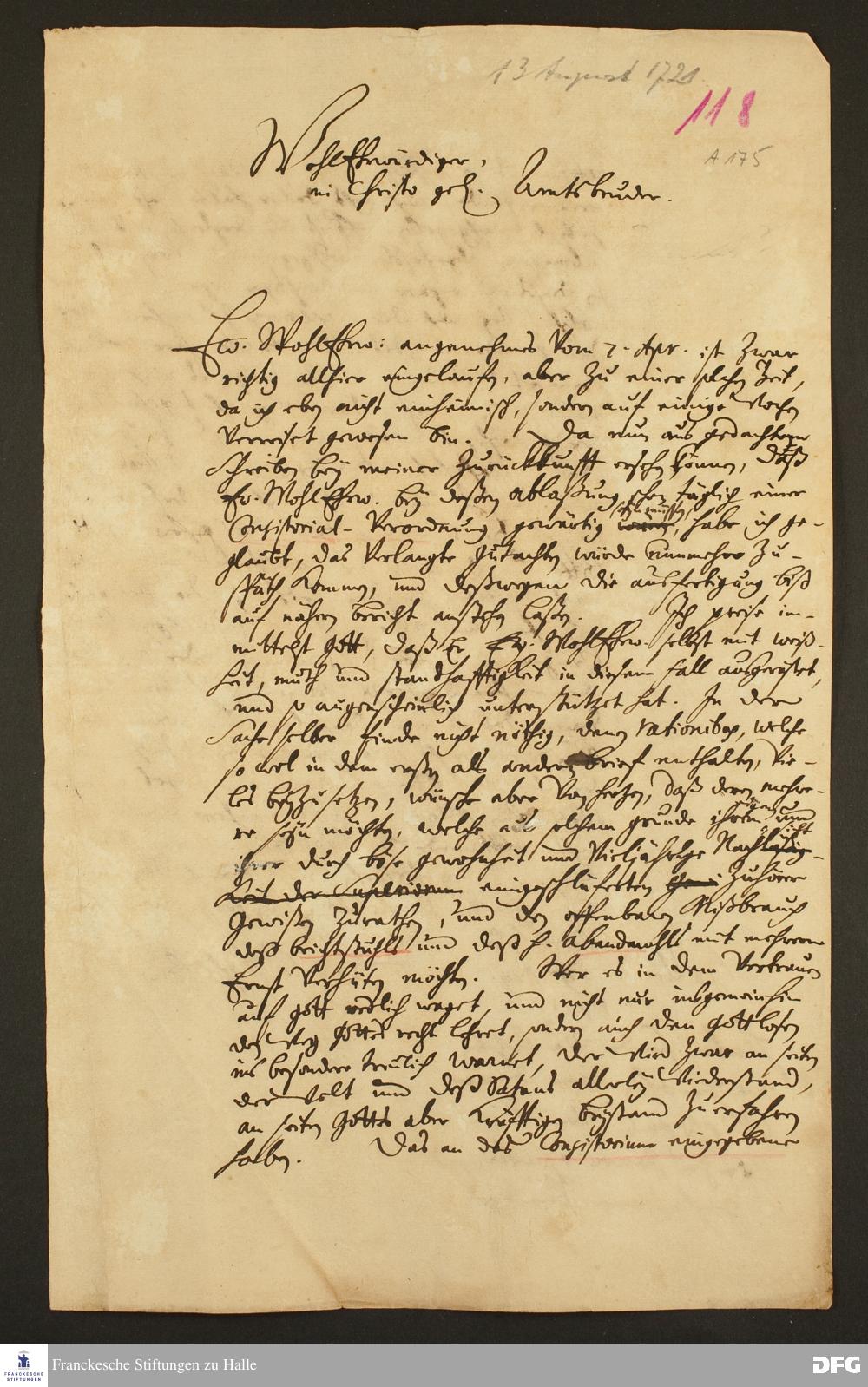 Brief von August Hermann Francke an [Johann Friedrich Gerken].