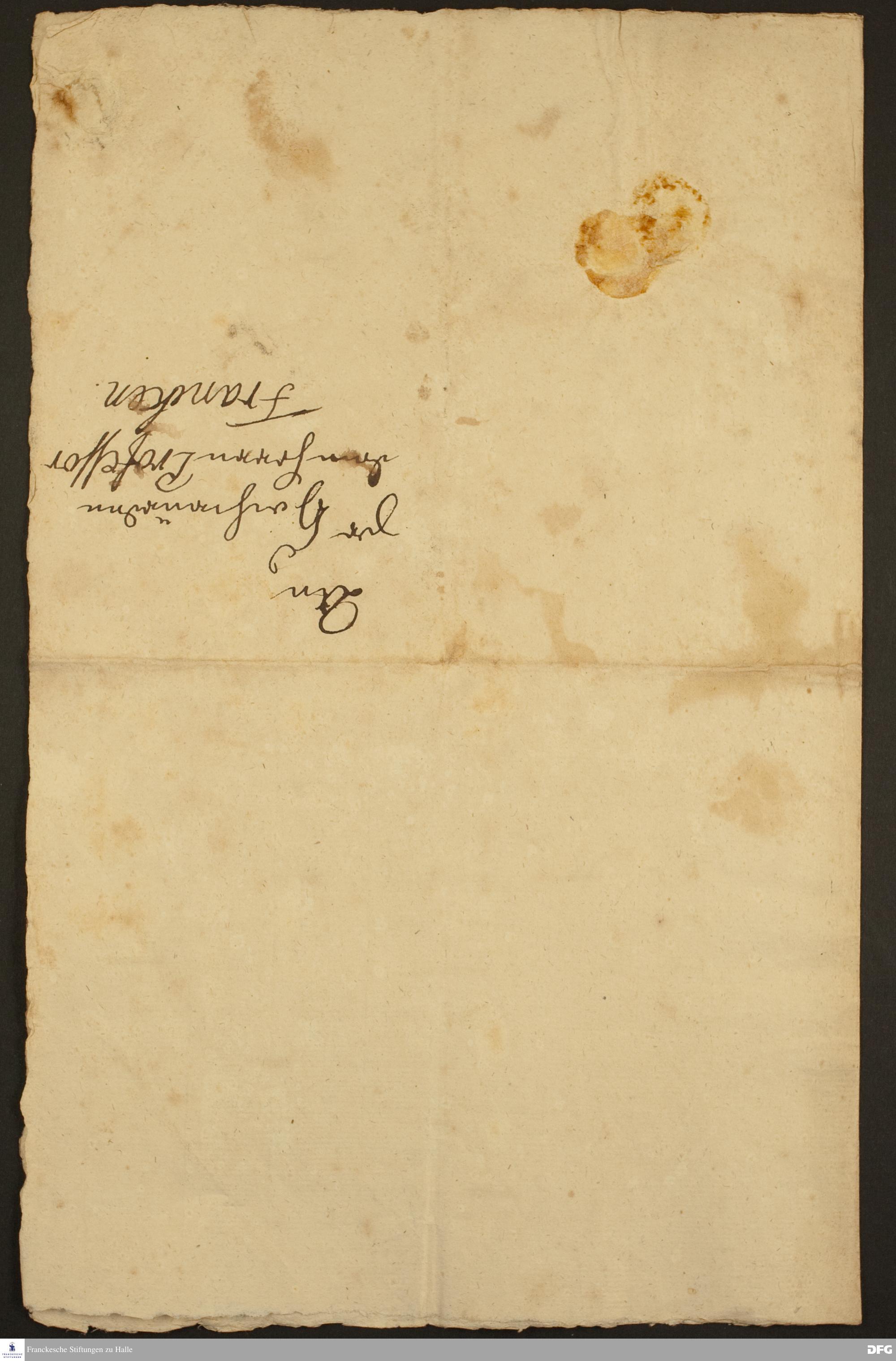 Postskriptum zu einem Brief von August Hermann Francke an Sophie Hedwig Prinzessin von Dänemark.