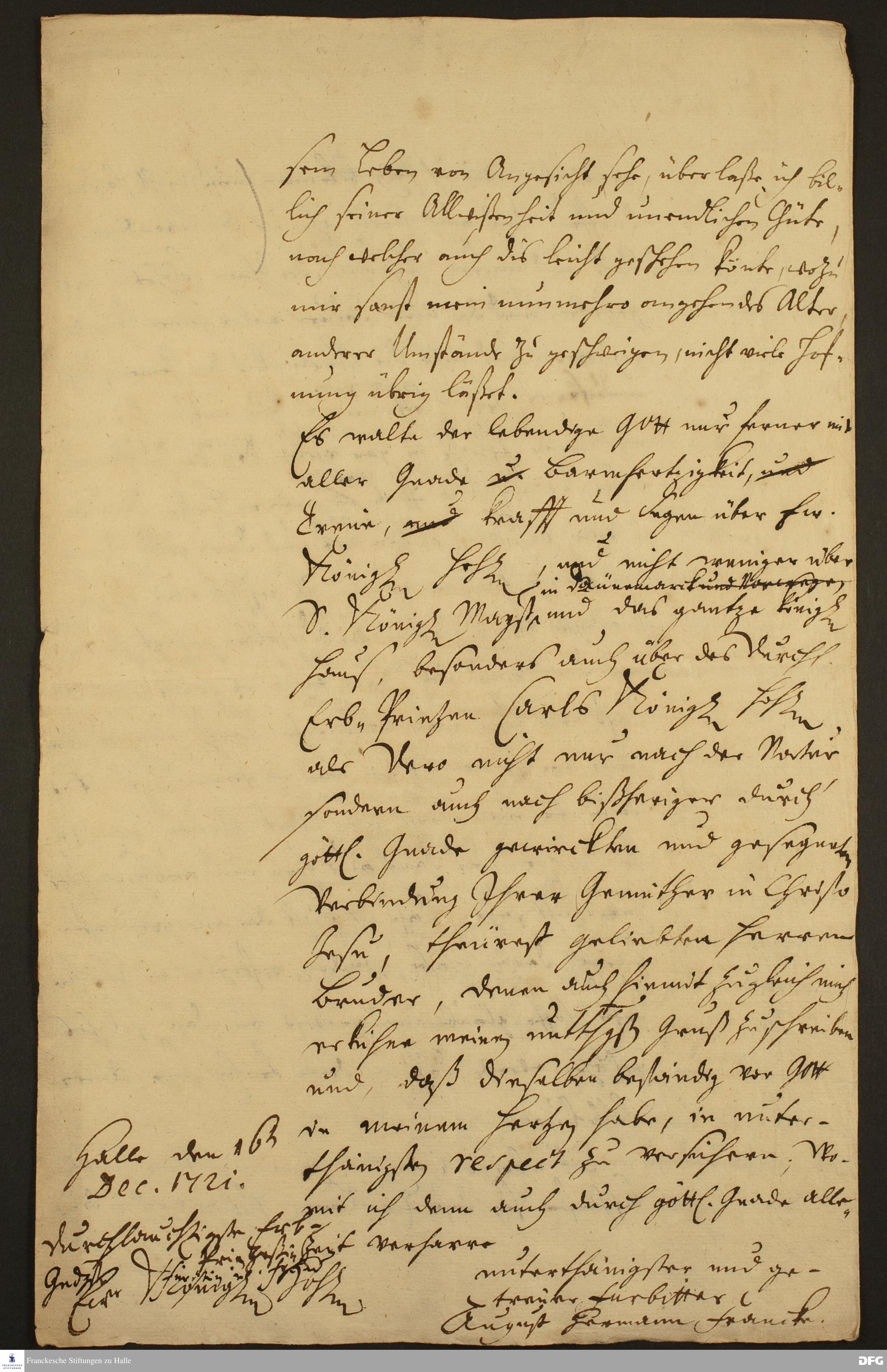 Brief von August Hermann Francke an Sophie Hedwig Prinzessin von Dänemark.