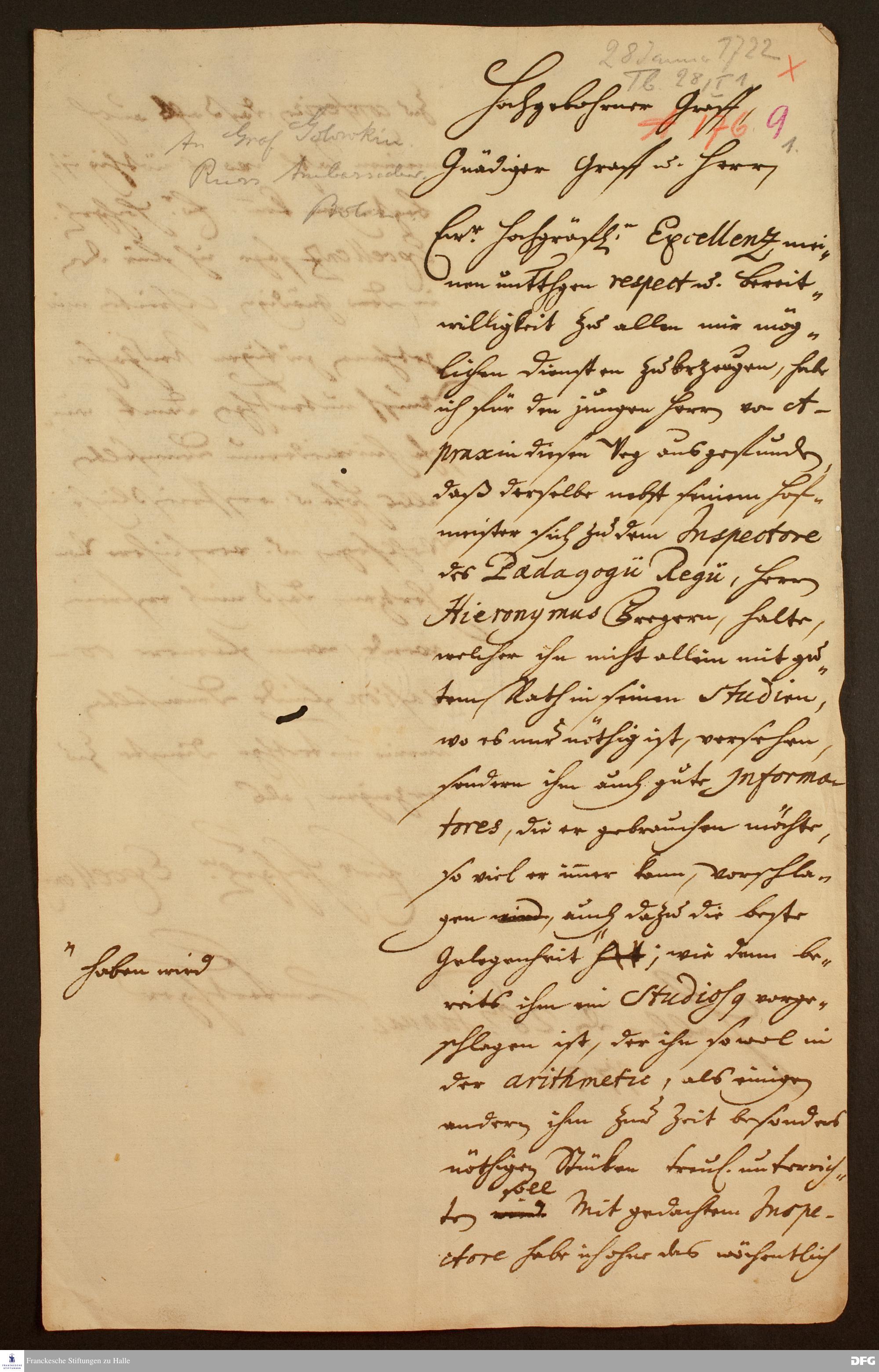 Brief von August Hermann Francke an Alexander Gawrilowitsch Golowkin.