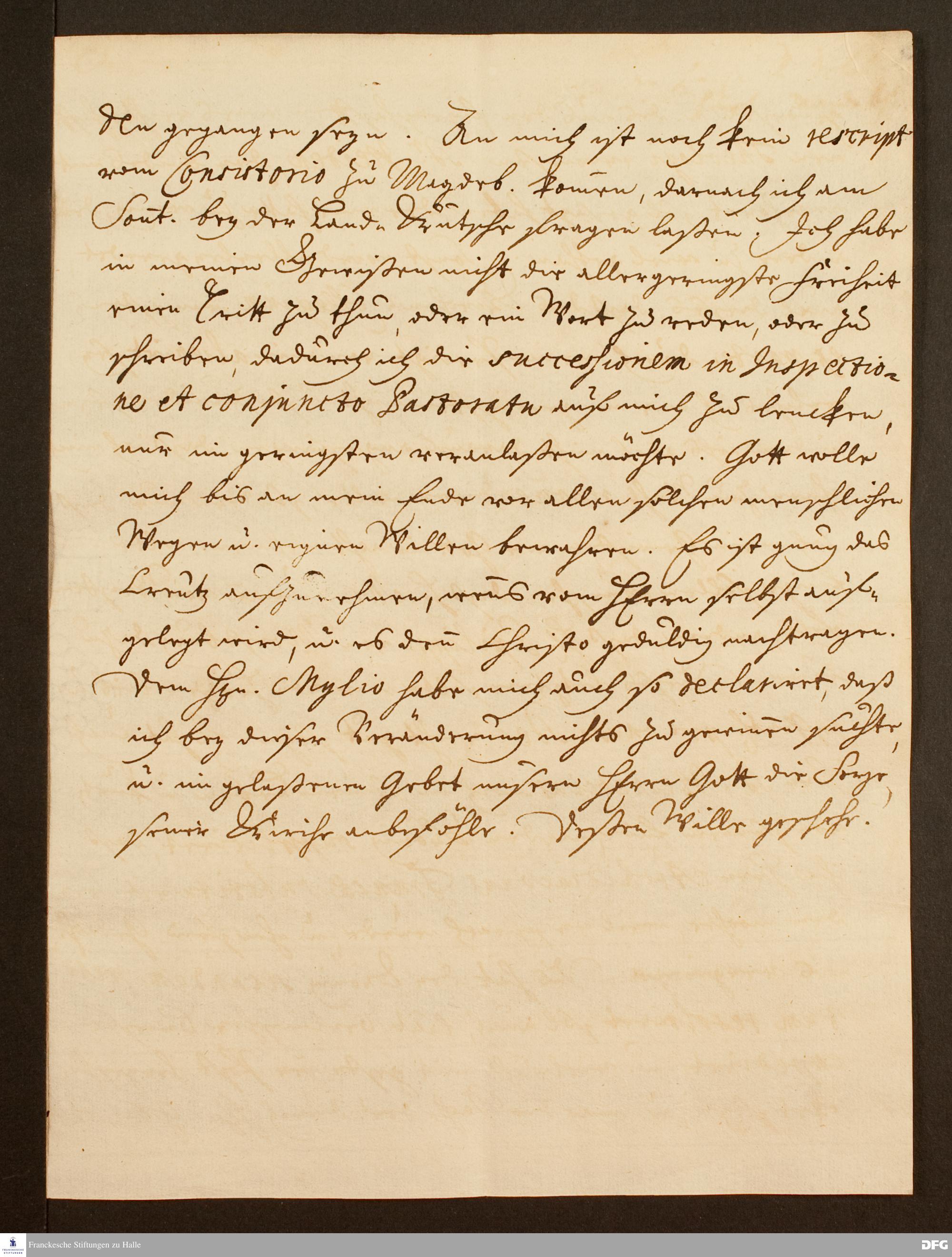 Brief von August Hermann Francke an Andreas Christoph Schubart.