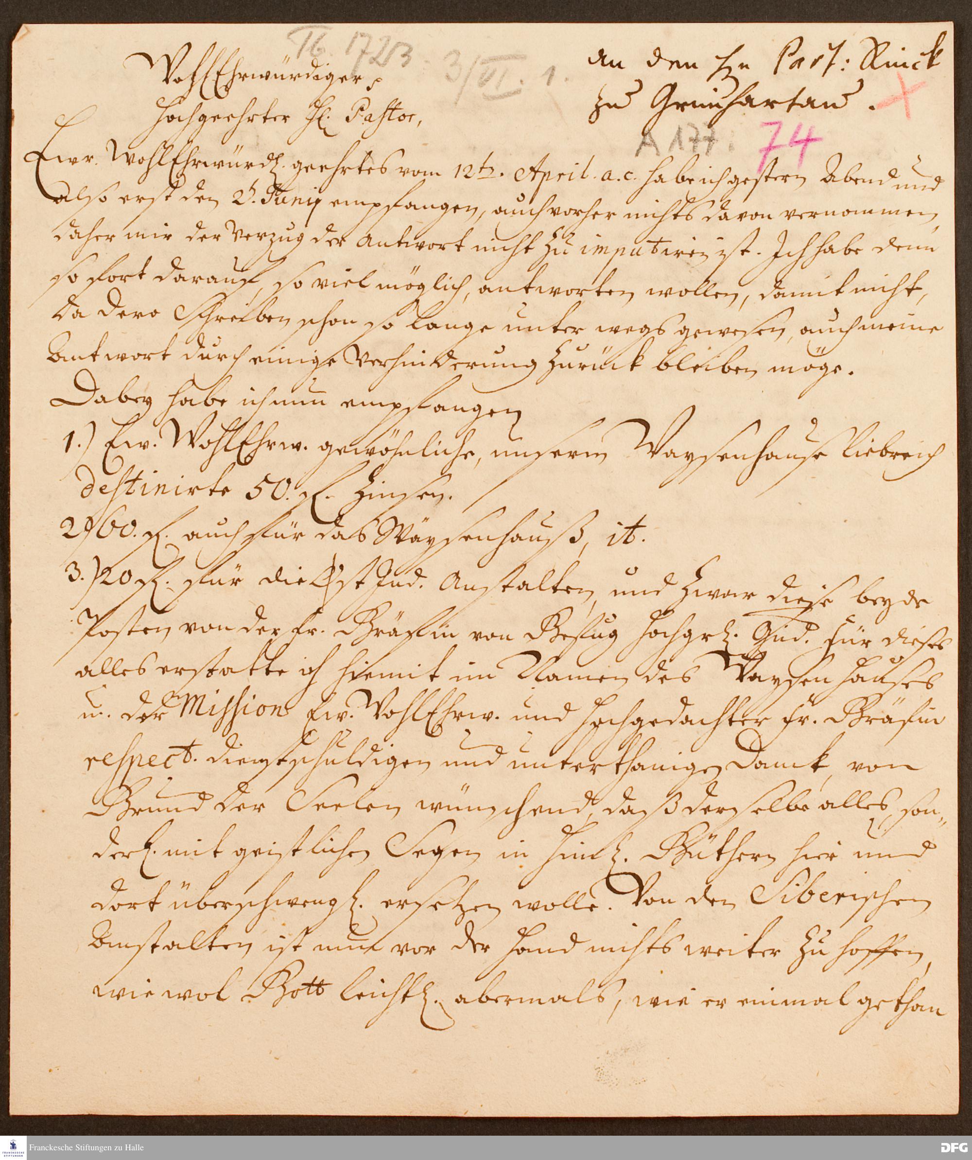 Brief von August Hermann Francke an Heinrich Rincke.