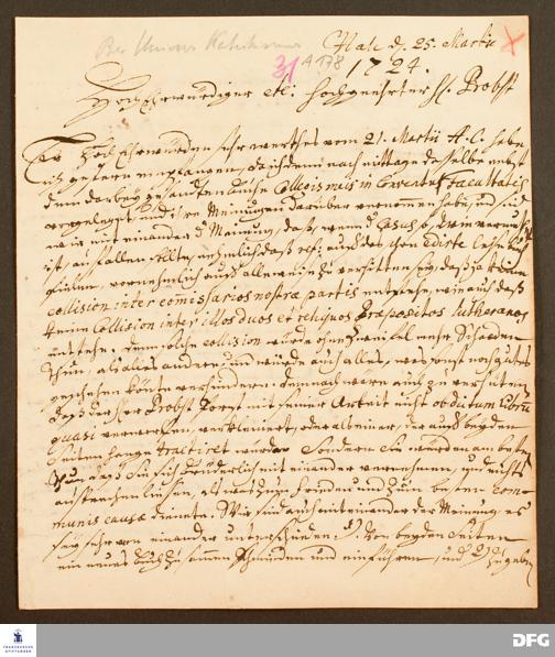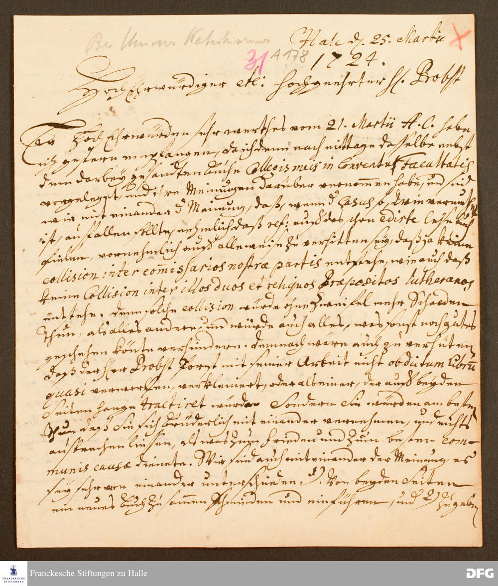 Brief von August Hermann Francke an Johann Gustav Reinbeck.