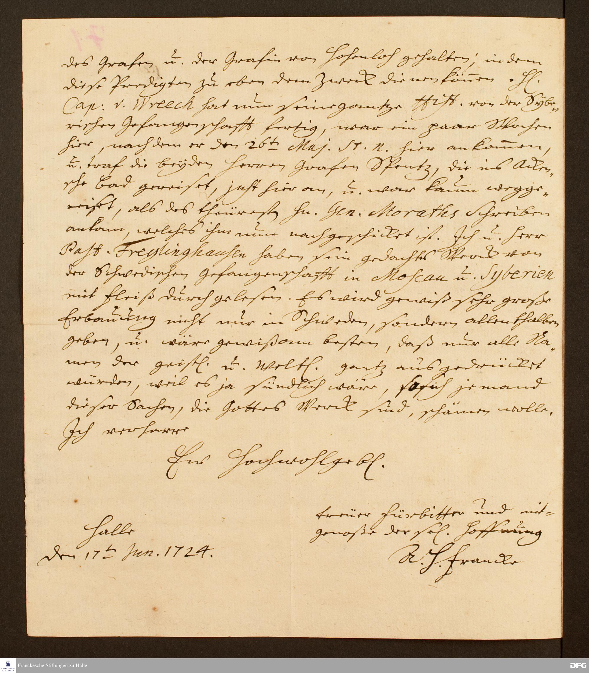 Brief von August Hermann Francke an Carl v. Morath.