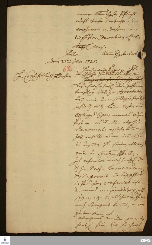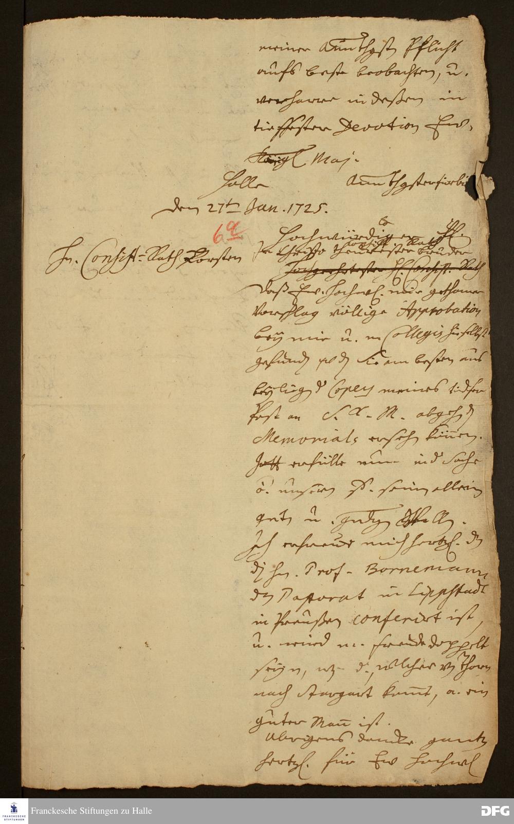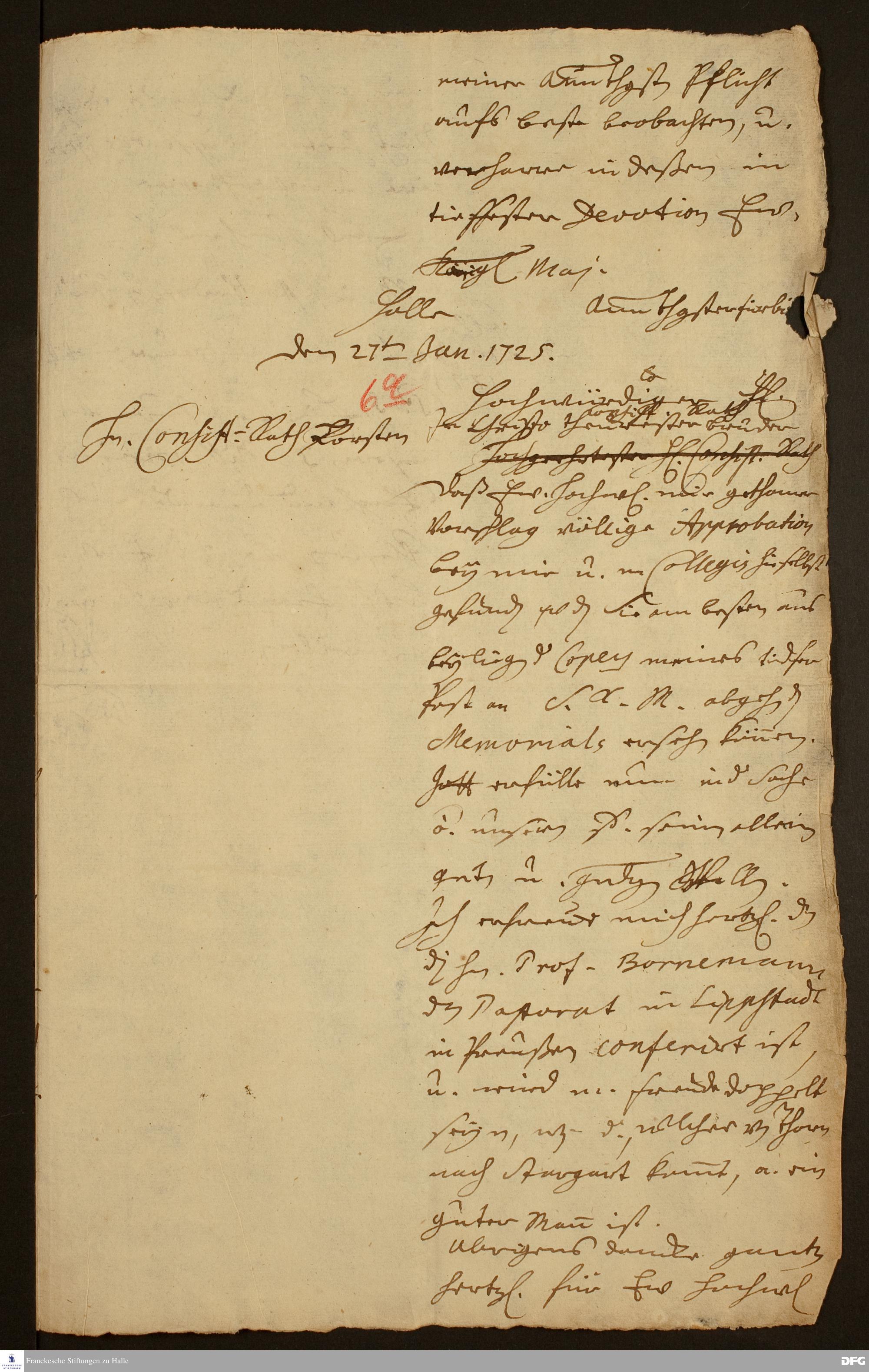 Brief von August Hermann Francke an Friedrich Wilhelm I., König in Preußen.