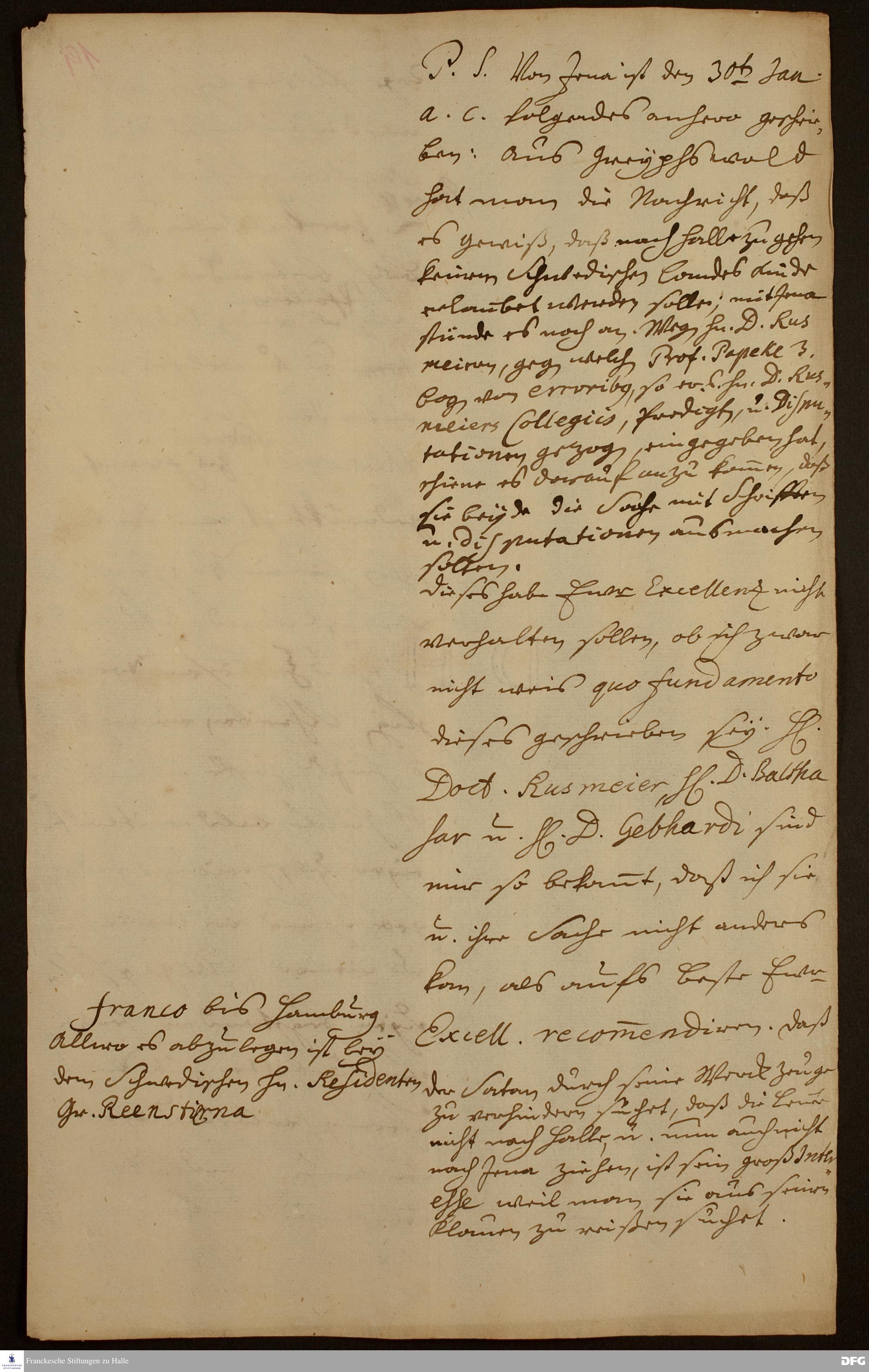 Brief von August Hermann Francke an Josias Cederhielm.