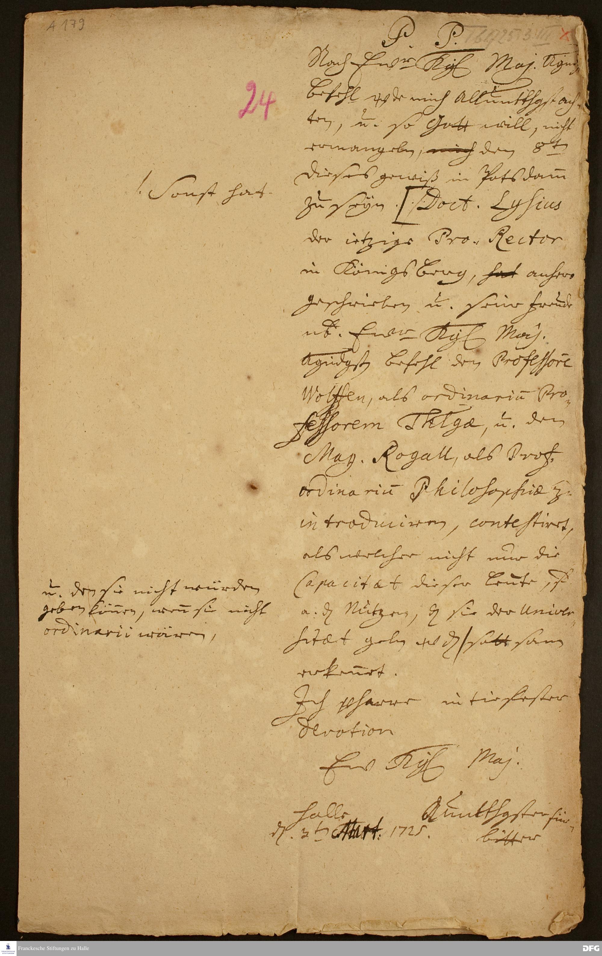 Brief von August Hermann Francke an Friedrich Wilhelm I., König in Preußen.