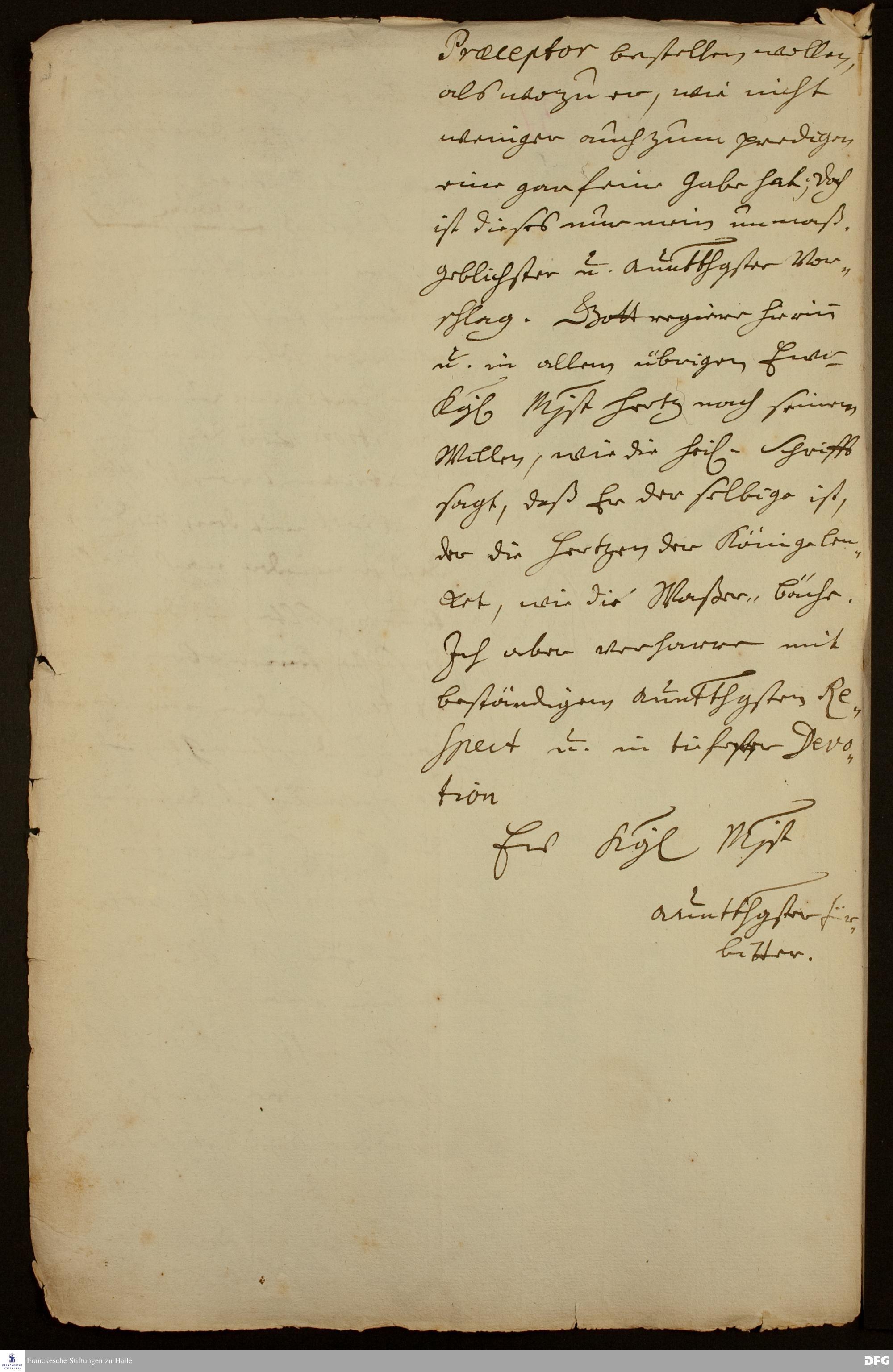 Brief von August Hermann Francke an Friedrich Wilhelm I., König in Preußen.