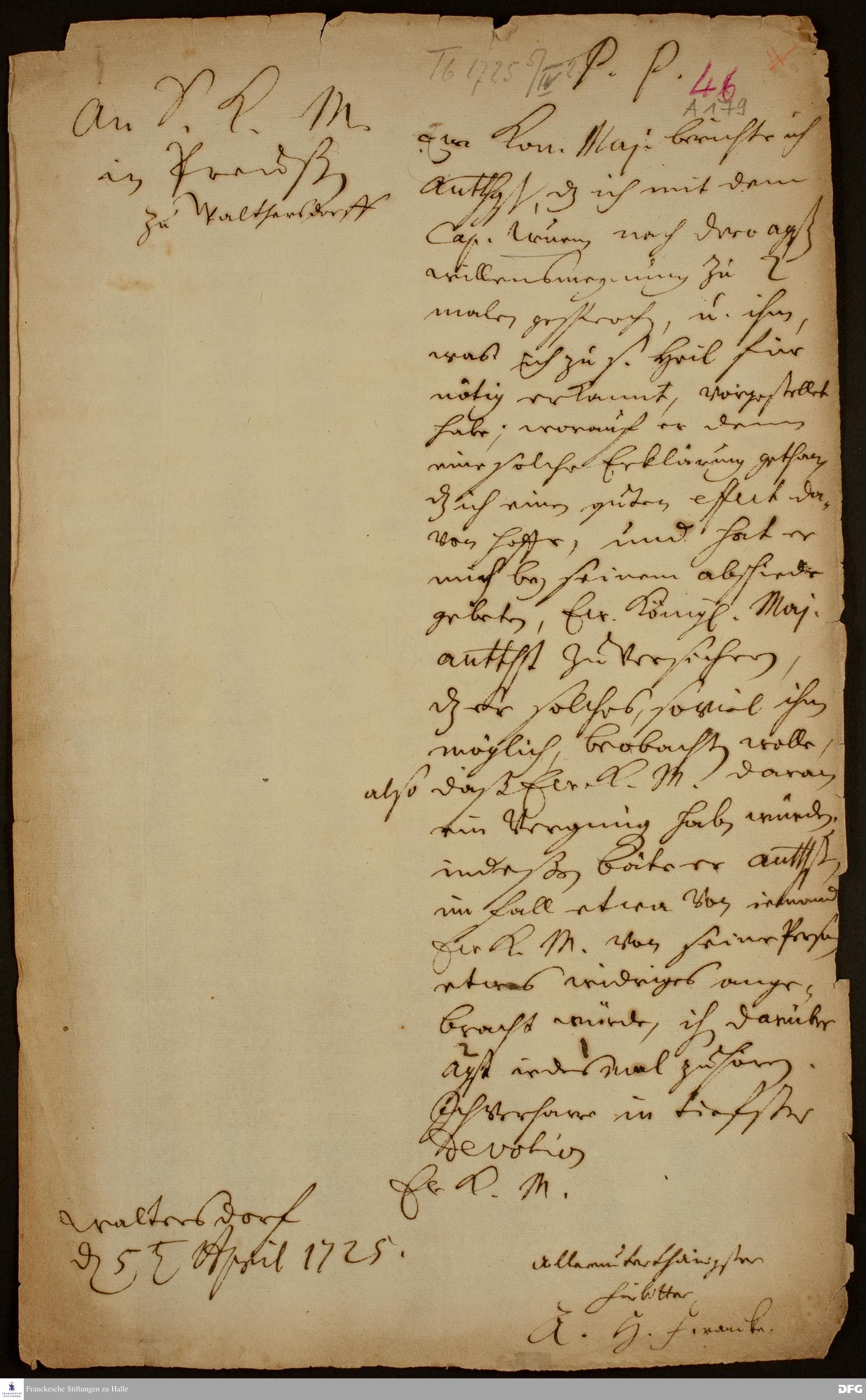 Brief von August Hermann Francke an Friedrich Wilhelm I., König in Preußen.