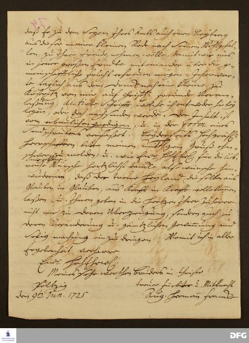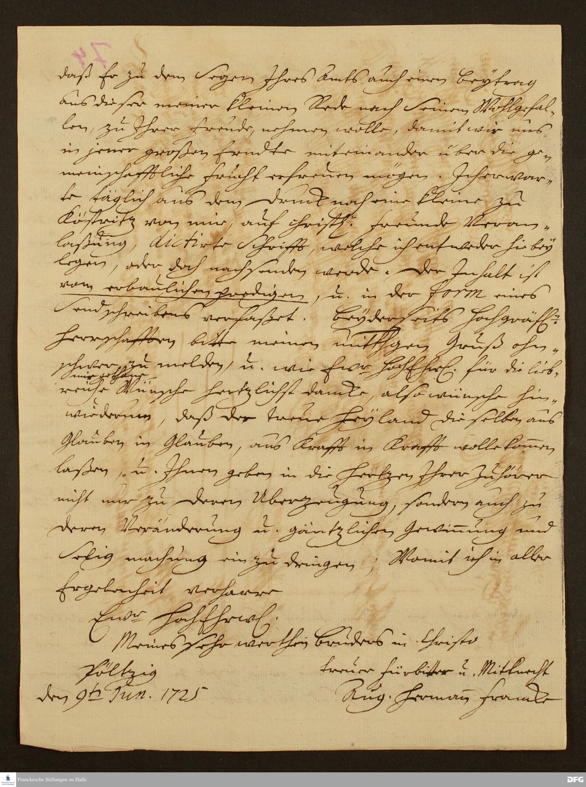 Brief von August Hermann Francke an M. C. v. Springsgut.
