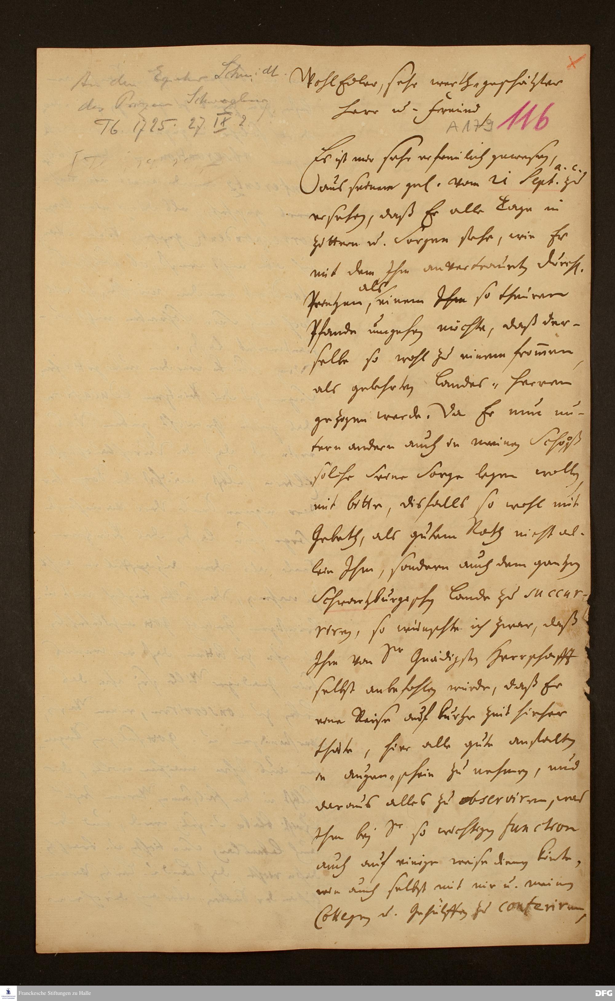 Brief von August Hermann Francke an Johann Lorenz Schmidt.
