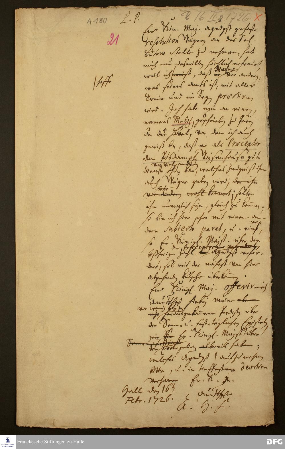 Brief von August Hermann Francke an Friedrich Wilhelm I., König in Preußen.