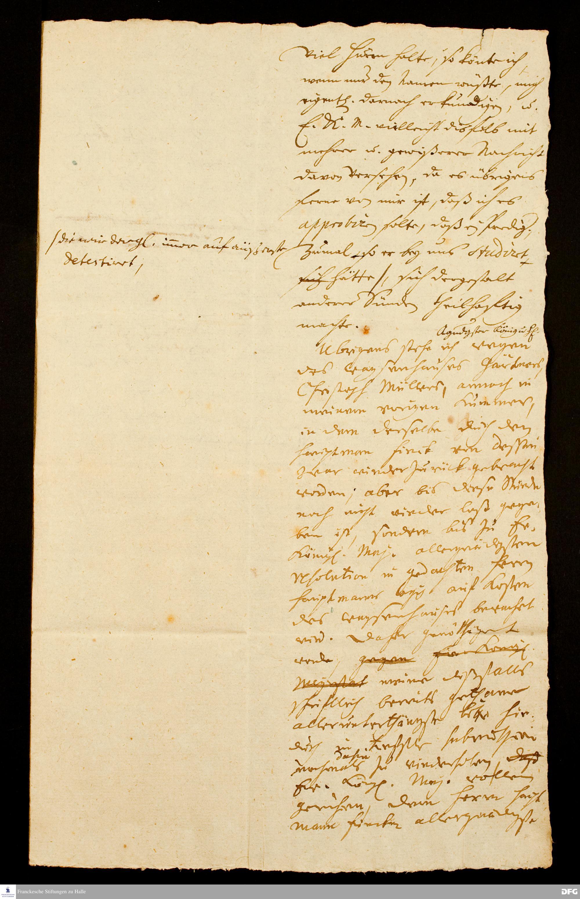 Brief von August Hermann Francke an Friedrich Wilhelm I., König in Preußen.