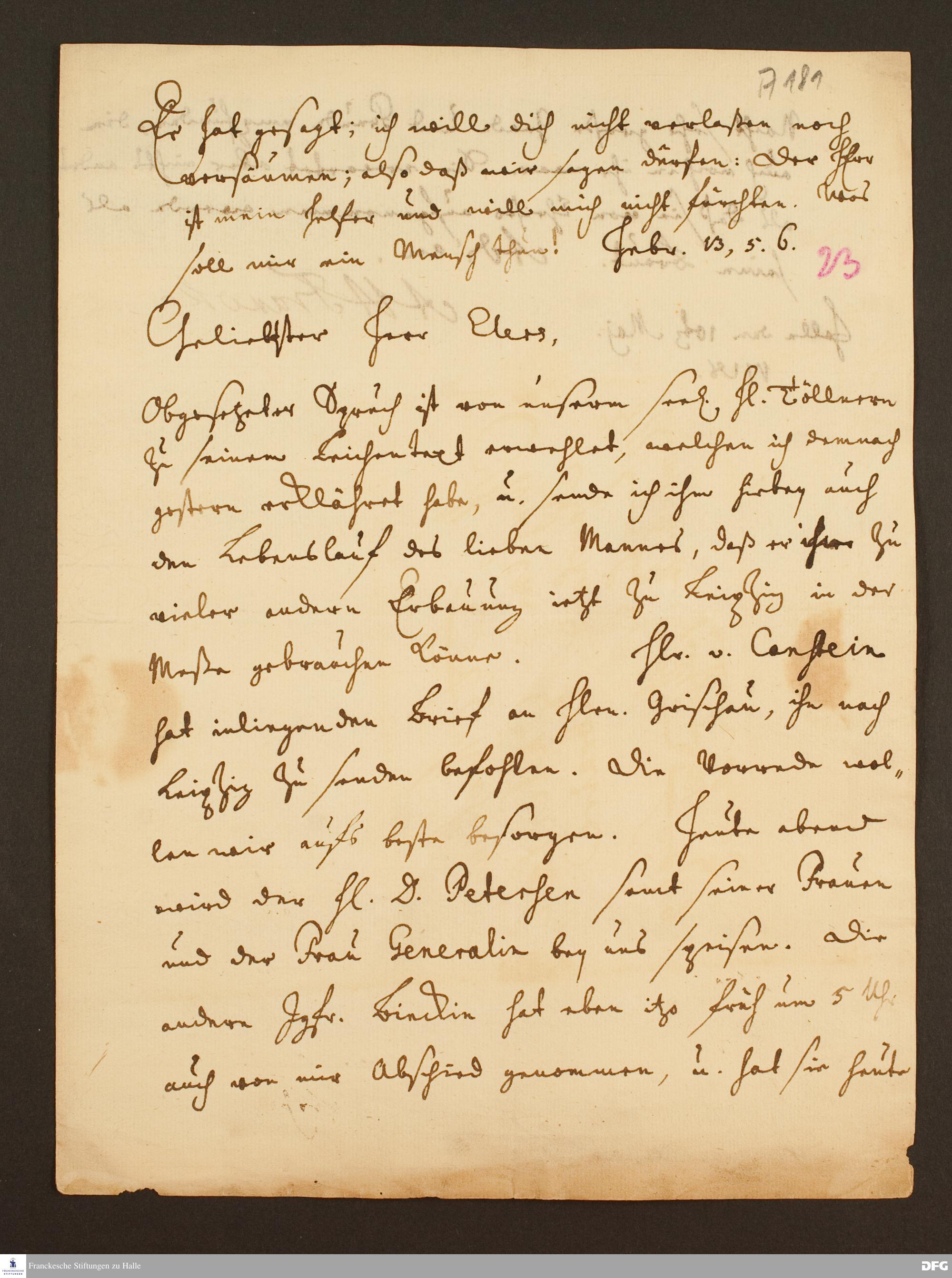 Brief von August Hermann Francke an Heinrich Julius Elers.
