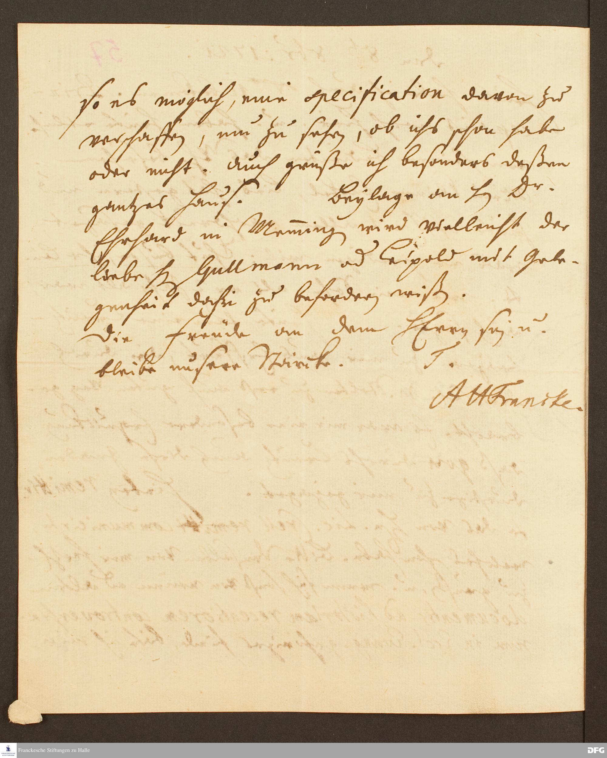 Brief von August Hermann Francke an Heinrich Julius Elers.
