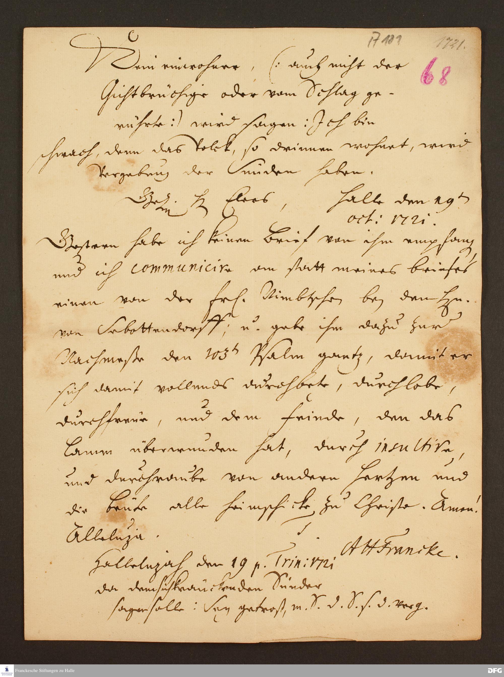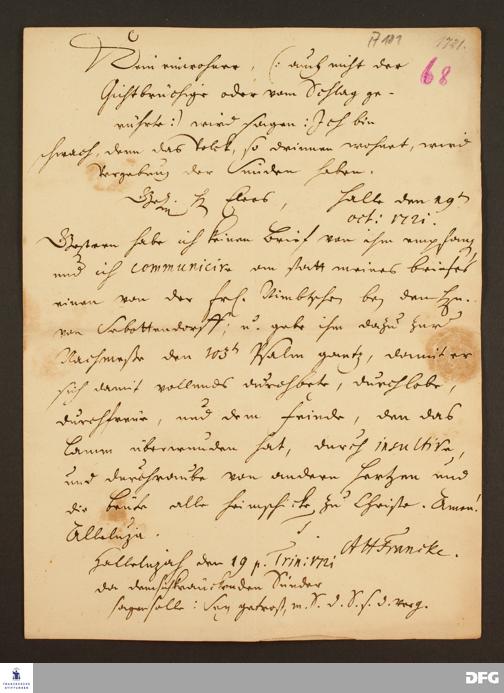 Brief von August Hermann Francke an Heinrich Julius Elers.
