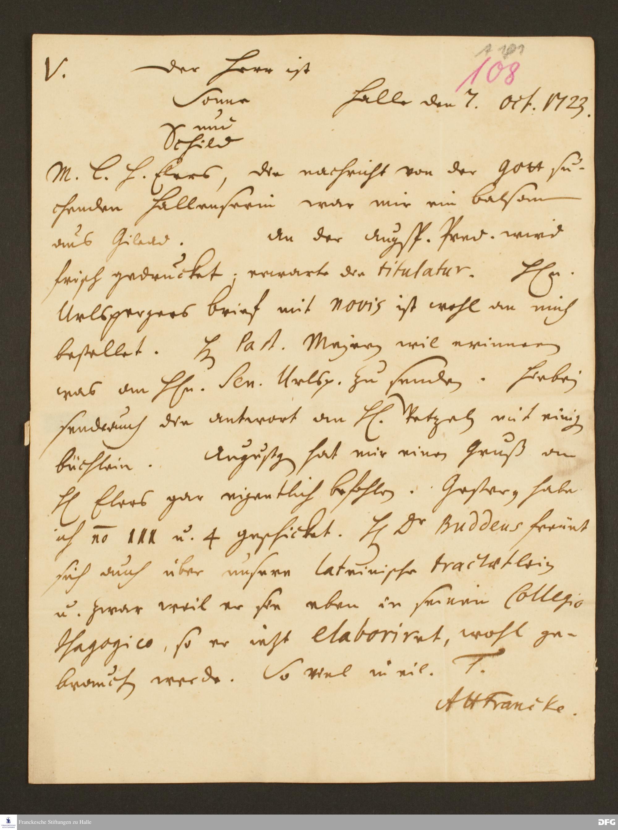 Brief von August Hermann Francke an Heinrich Julius Elers.