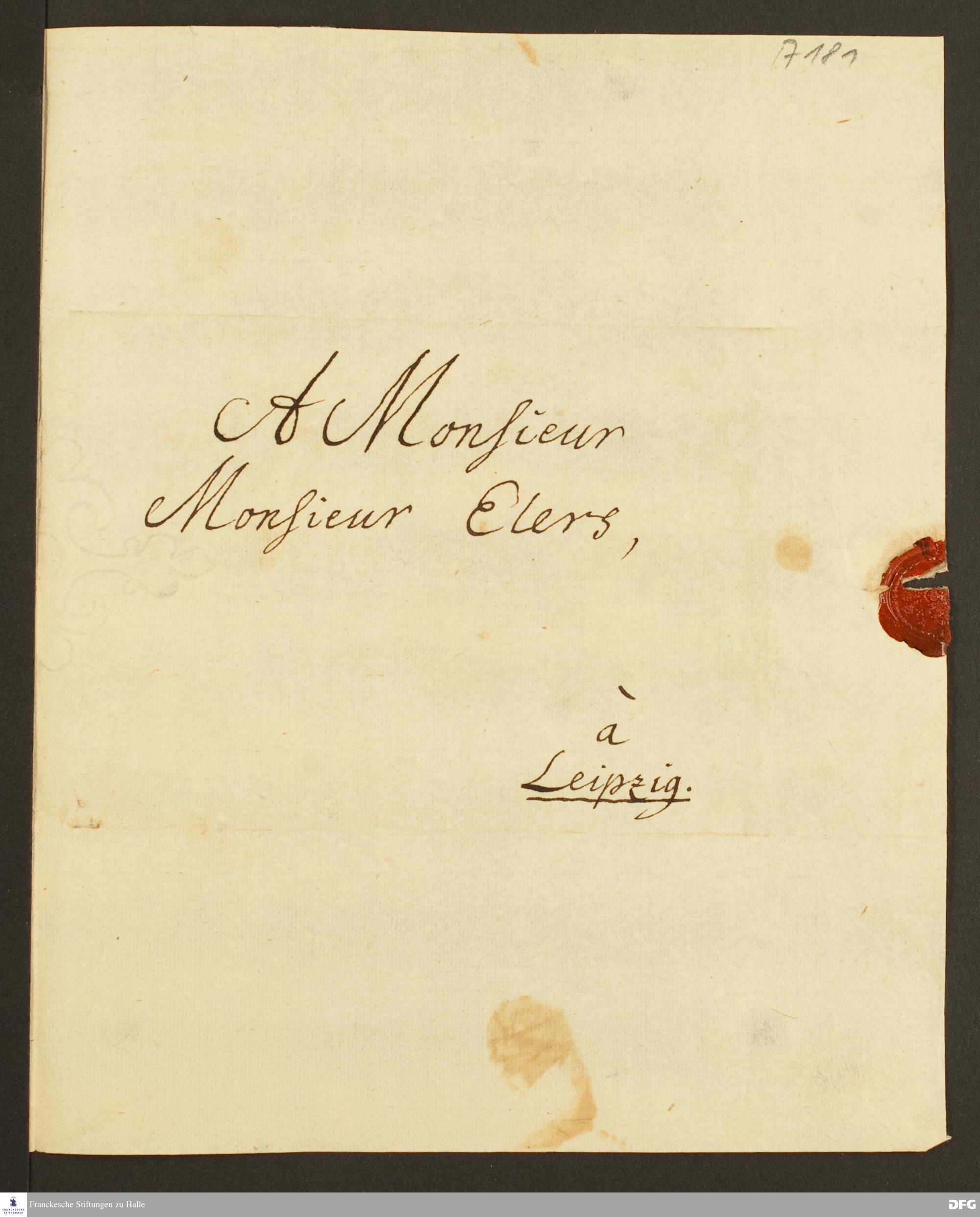 Brief von August Hermann Francke an Heinrich Julius Elers.