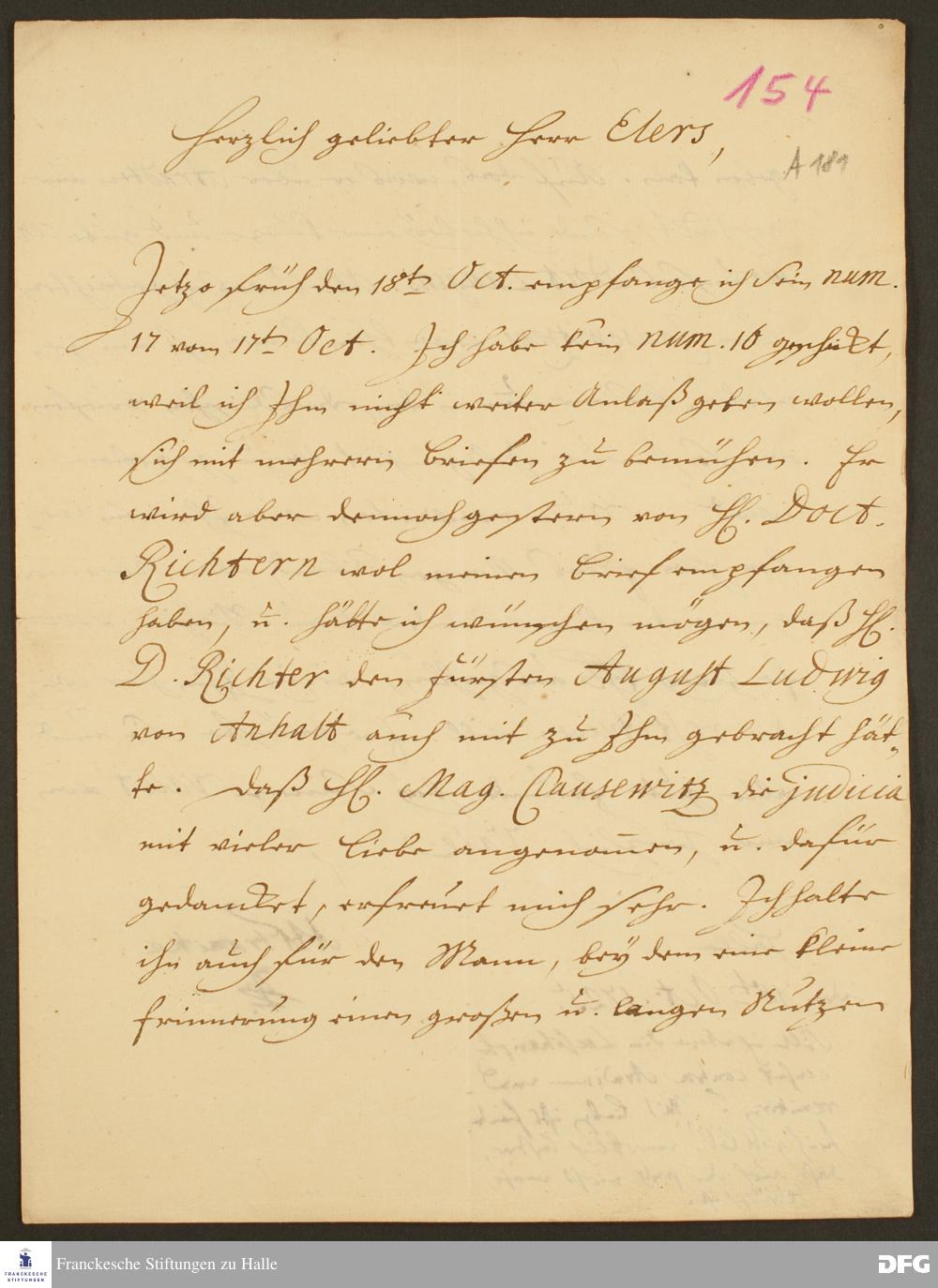 Brief von August Hermann Francke an Heinrich Julius Elers.