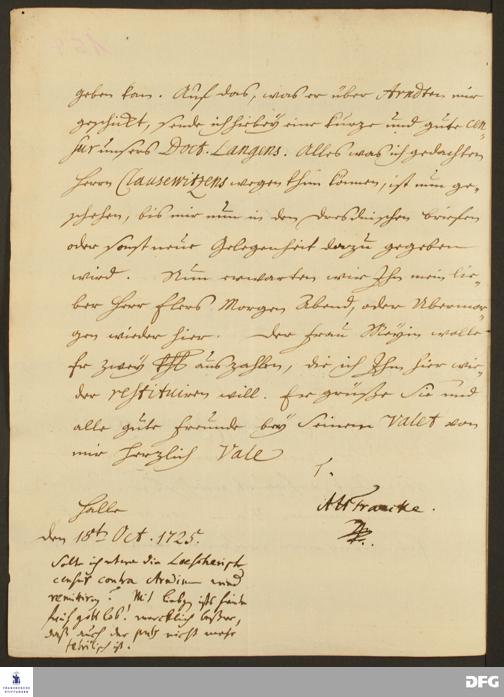 Brief von August Hermann Francke an Heinrich Julius Elers.