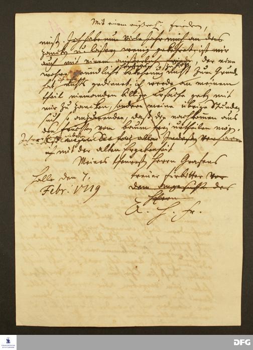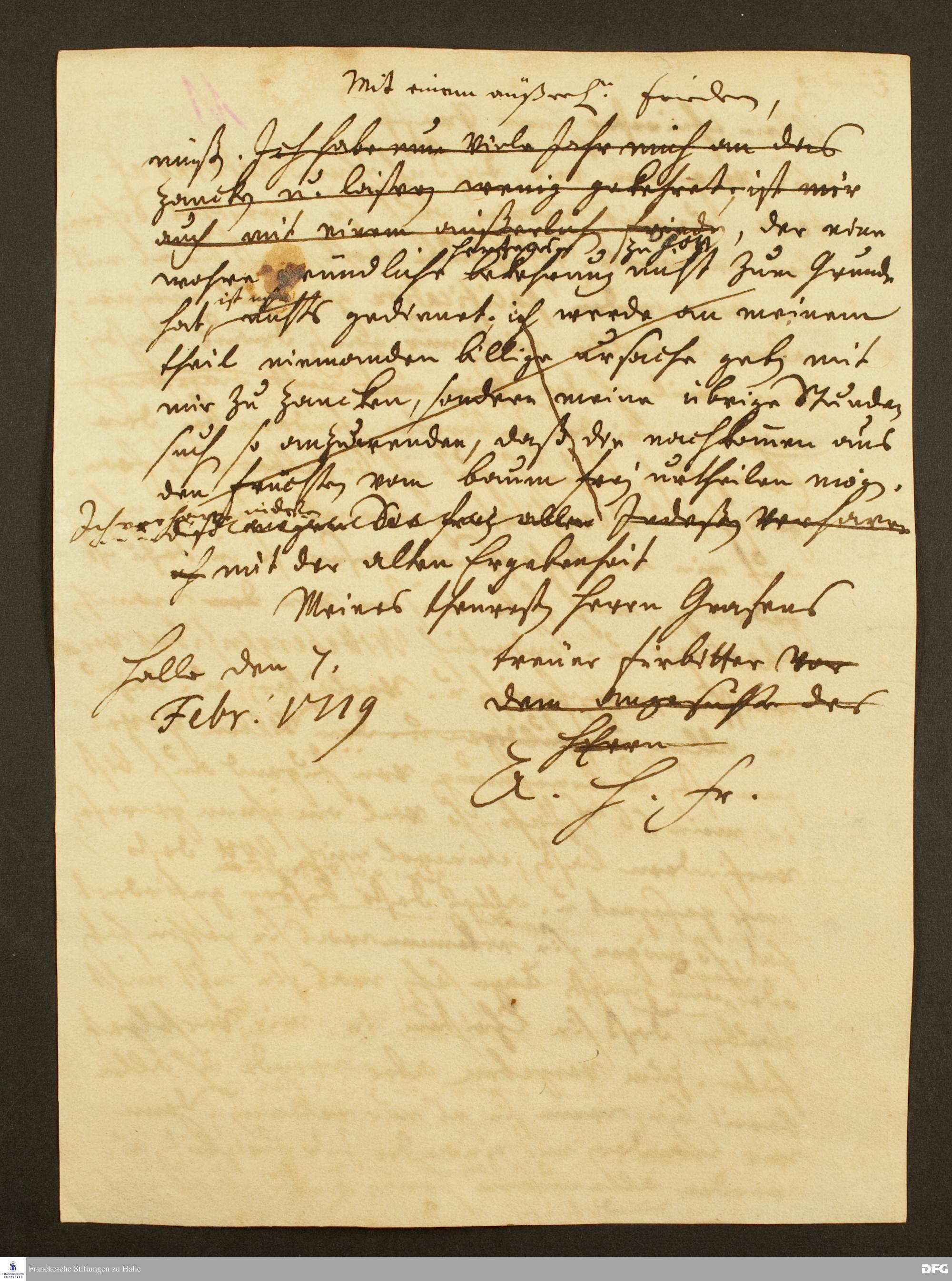 Brief von August Hermann Francke an Nikolaus Ludwig v. Zinzendorf.