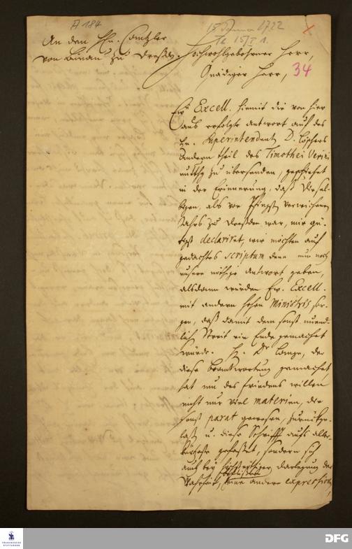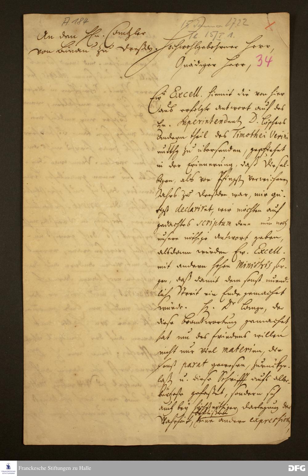Brief von August Hermann Francke an Heinrich v. Bünau.