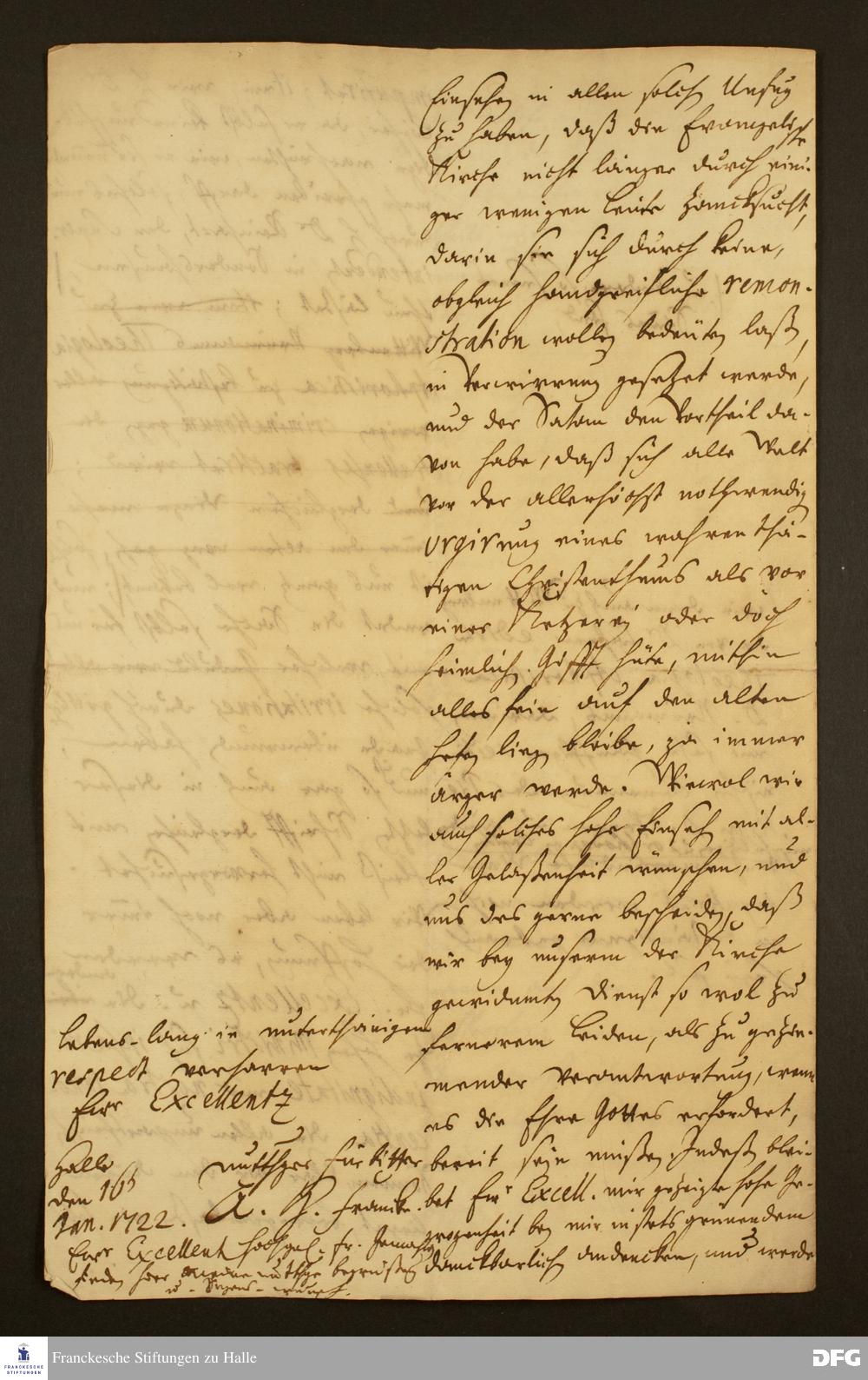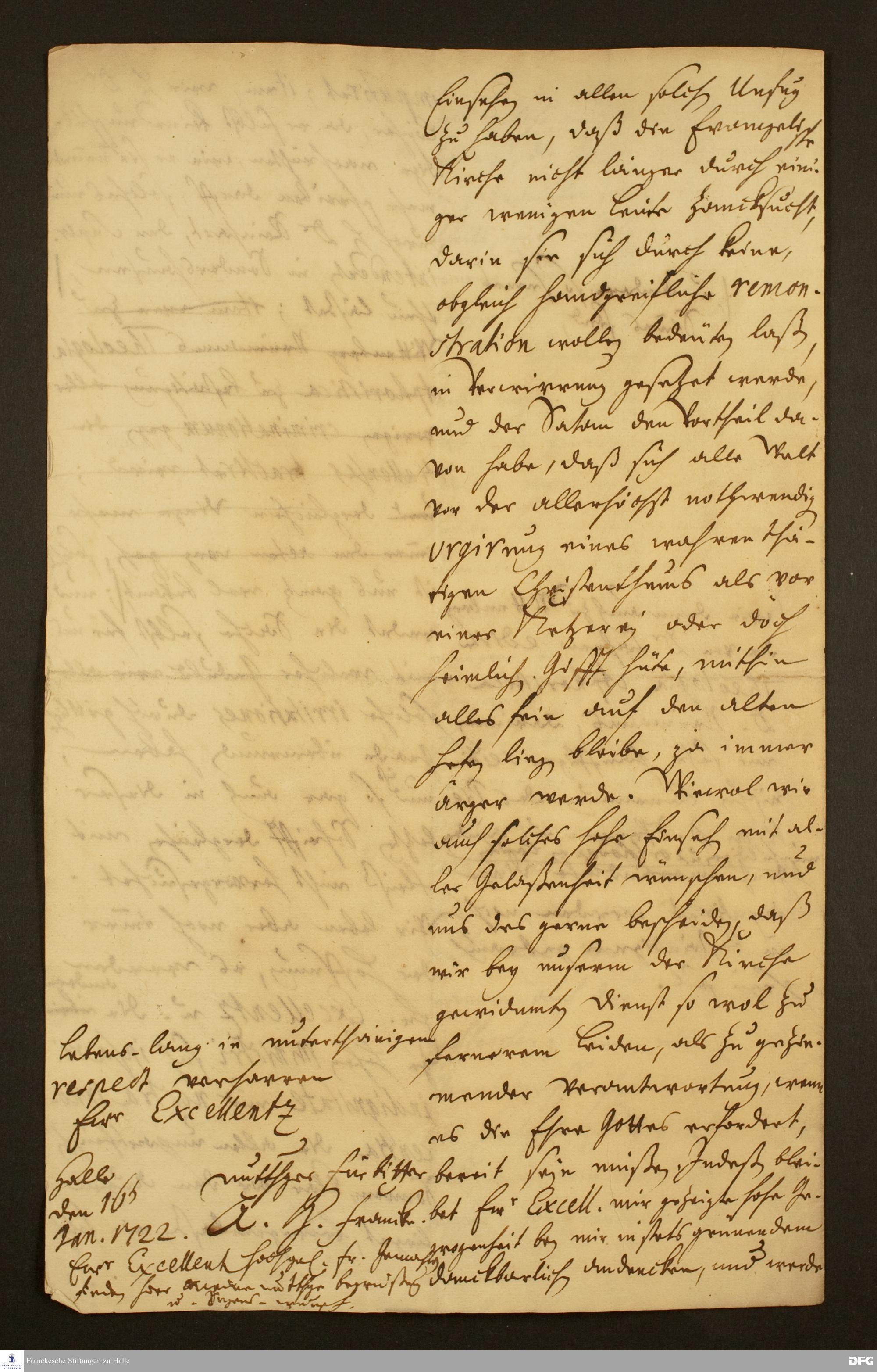 Brief von August Hermann Francke an Heinrich v. Bünau.