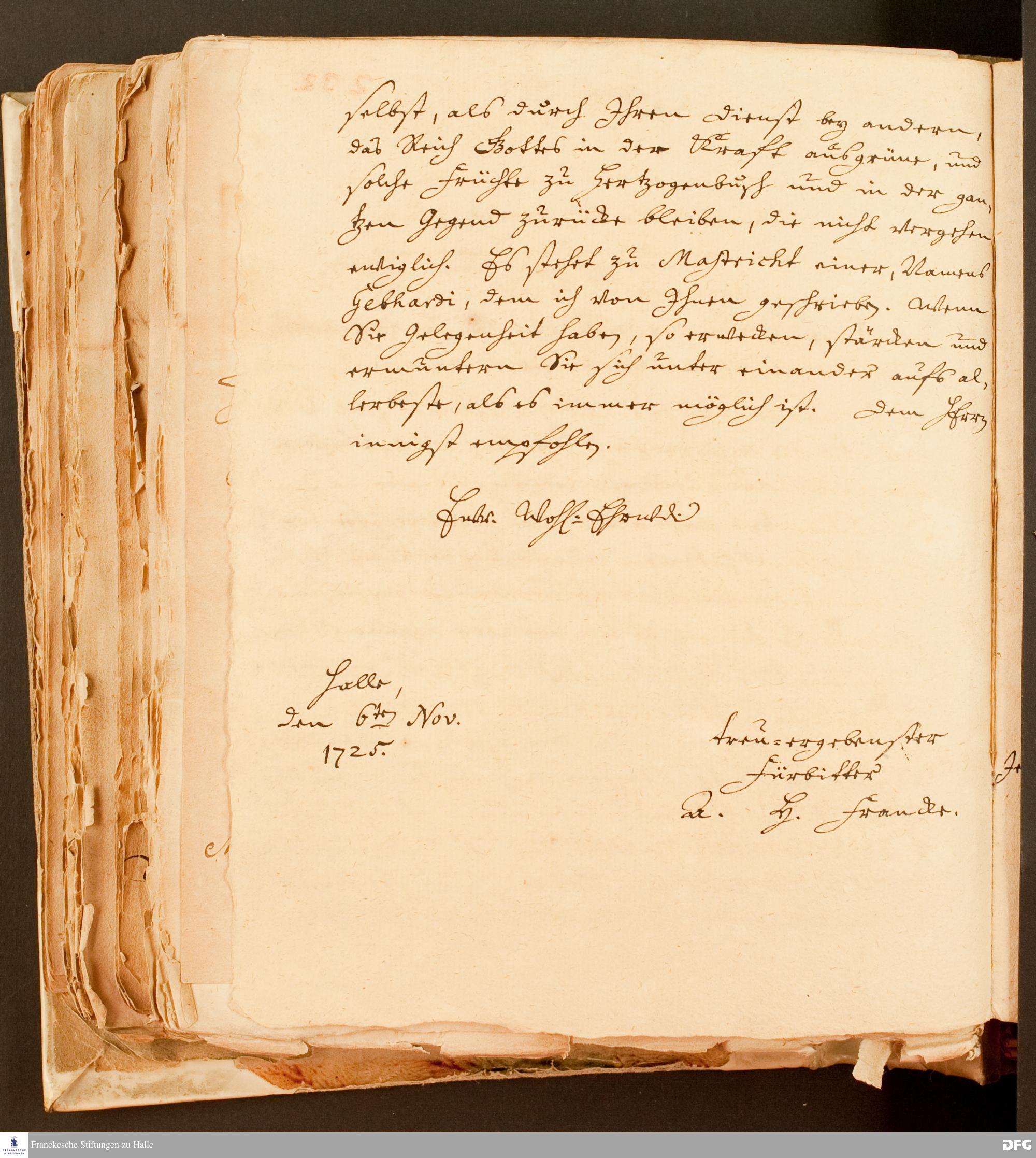 Brief von August Hermann Francke an Johann Gottlieb Pambo.