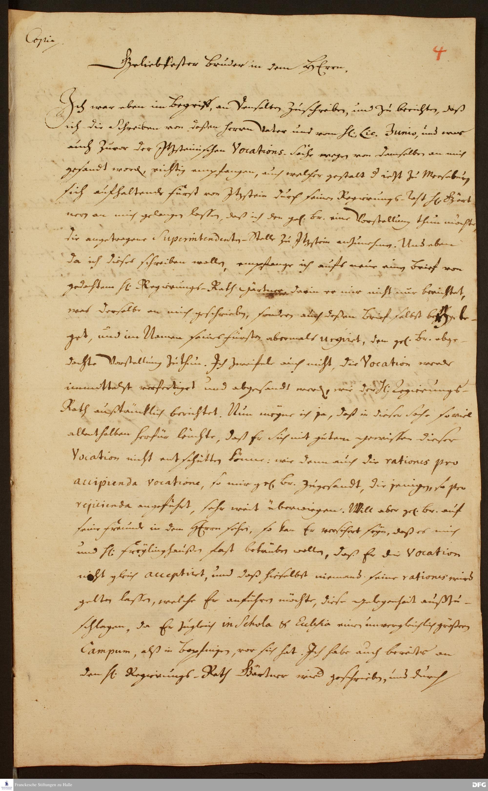Brief von August Hermann Francke an Johann Daniel Herrnschmidt.