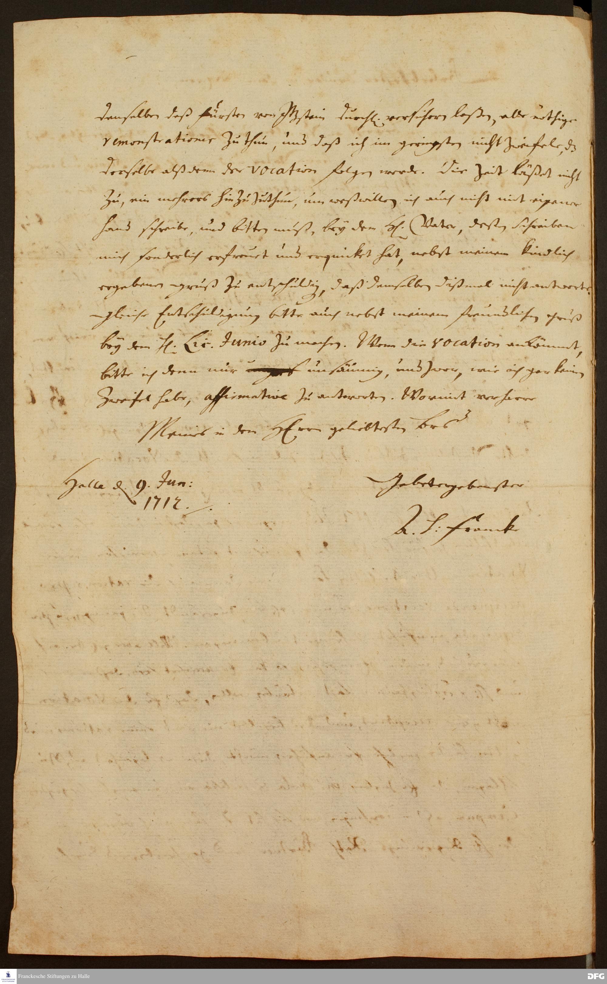 Brief von August Hermann Francke an Johann Daniel Herrnschmidt.