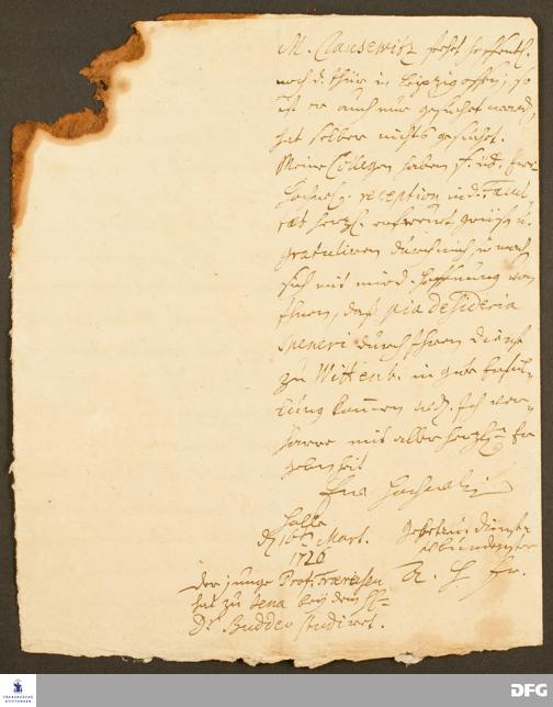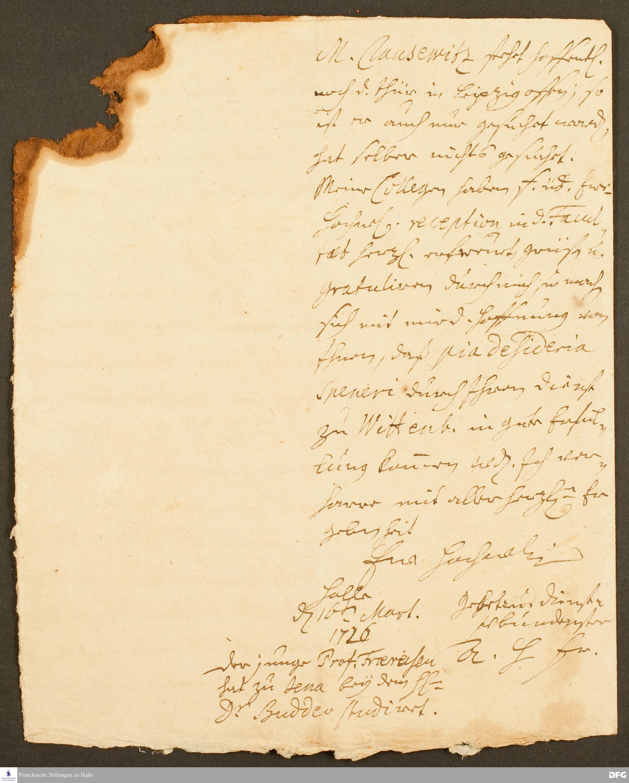 Brief von August Hermann Francke an Johann Caspar Haferung.