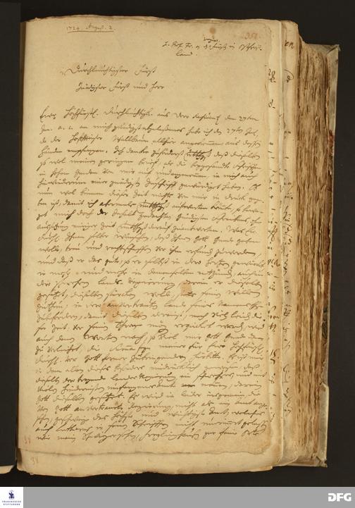 Brief von August Hermann Francke an Georg Albrecht v. Ostfriesland.