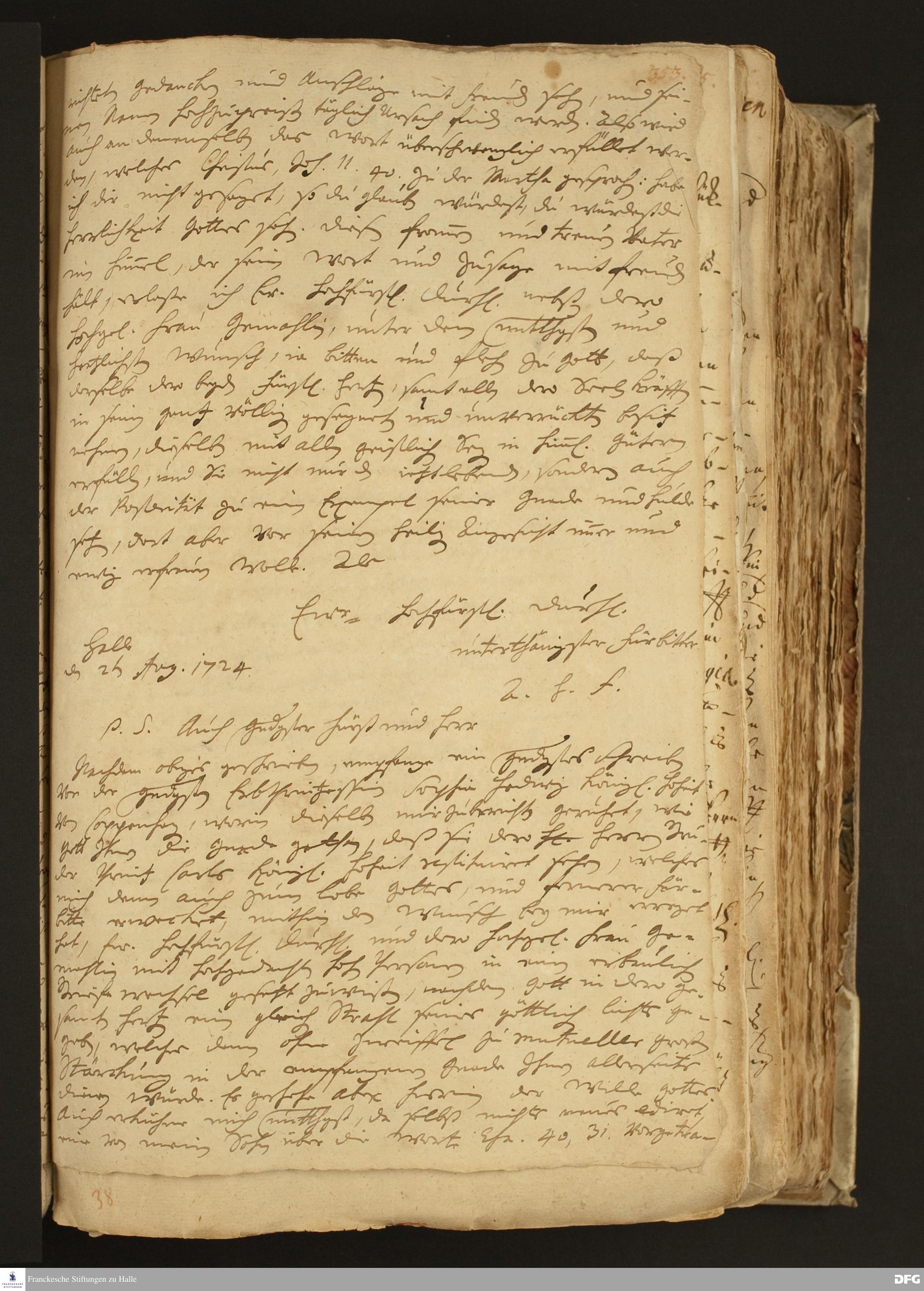 Brief von August Hermann Francke an Georg Albrecht v. Ostfriesland.