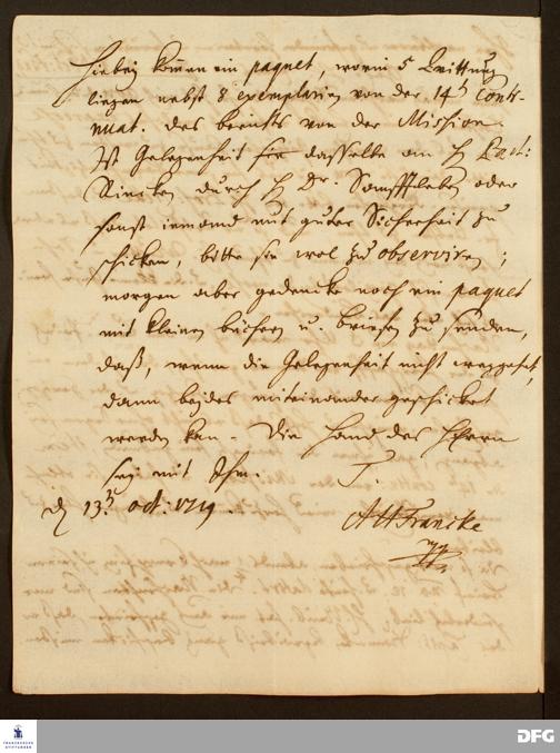 Brief von August Hermann Francke an Heinrich Julius Elers.