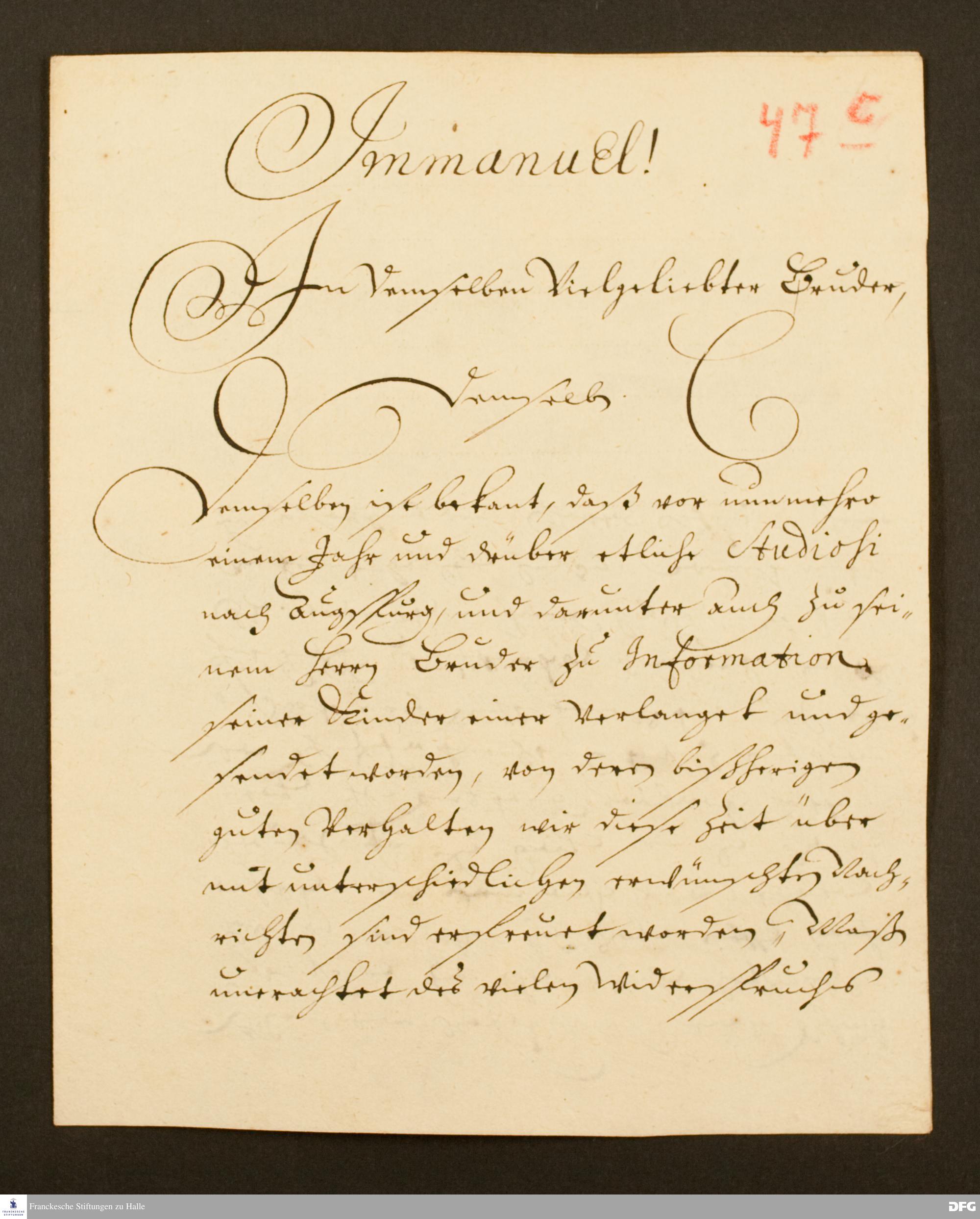 Anfang eines Briefs von August Hermann Francke an [Andreas Gross].