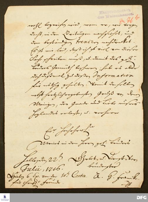 Brief von August Hermann Francke an Israel Clauder.