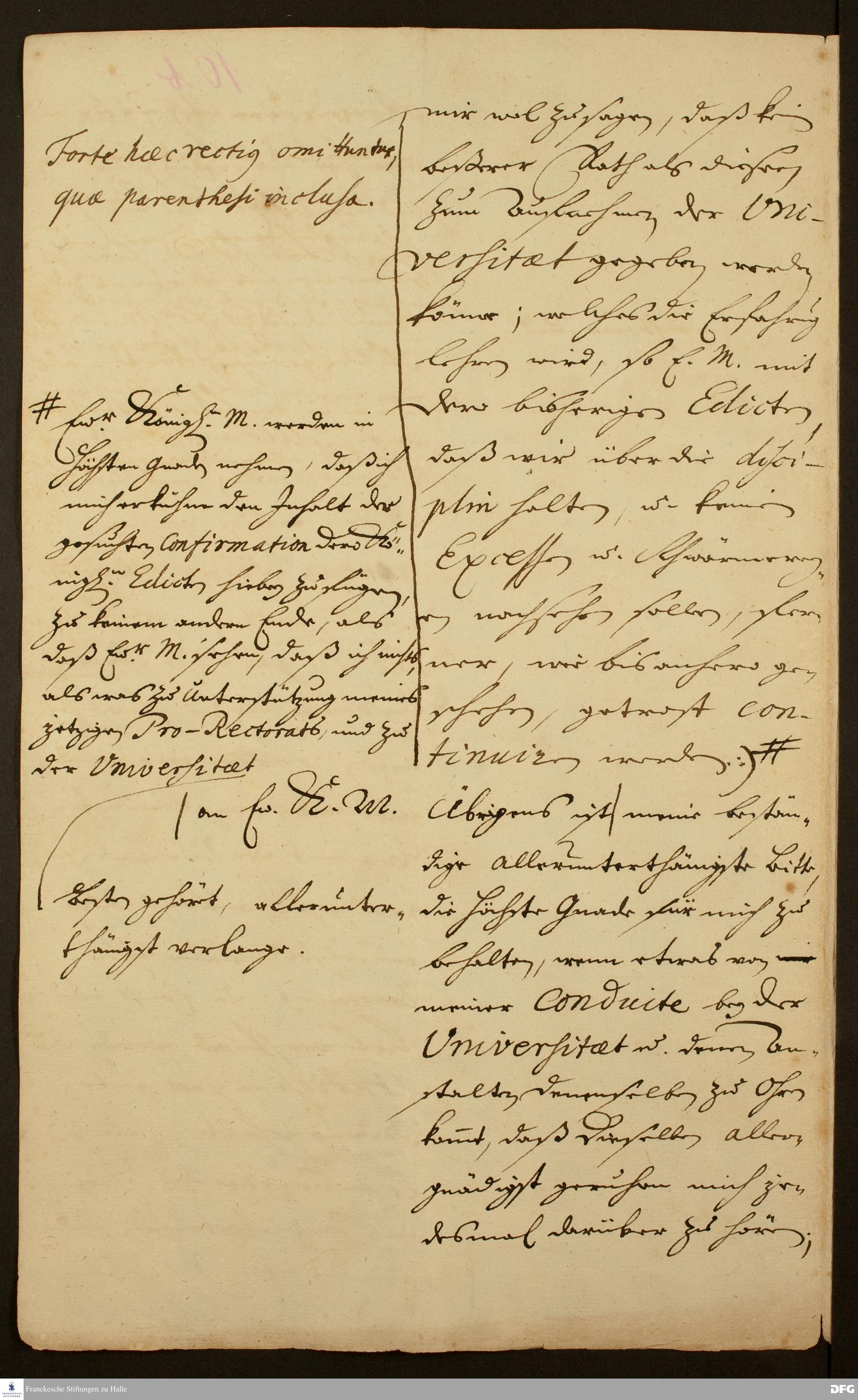 Brief von August Hermann Francke an [Friedrich Wilhelm I., König in Preußen].