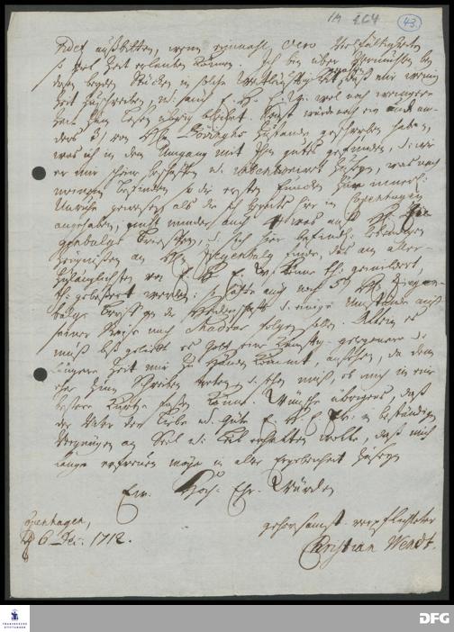 Brief von Christian Wendt an August Hermann Francke.