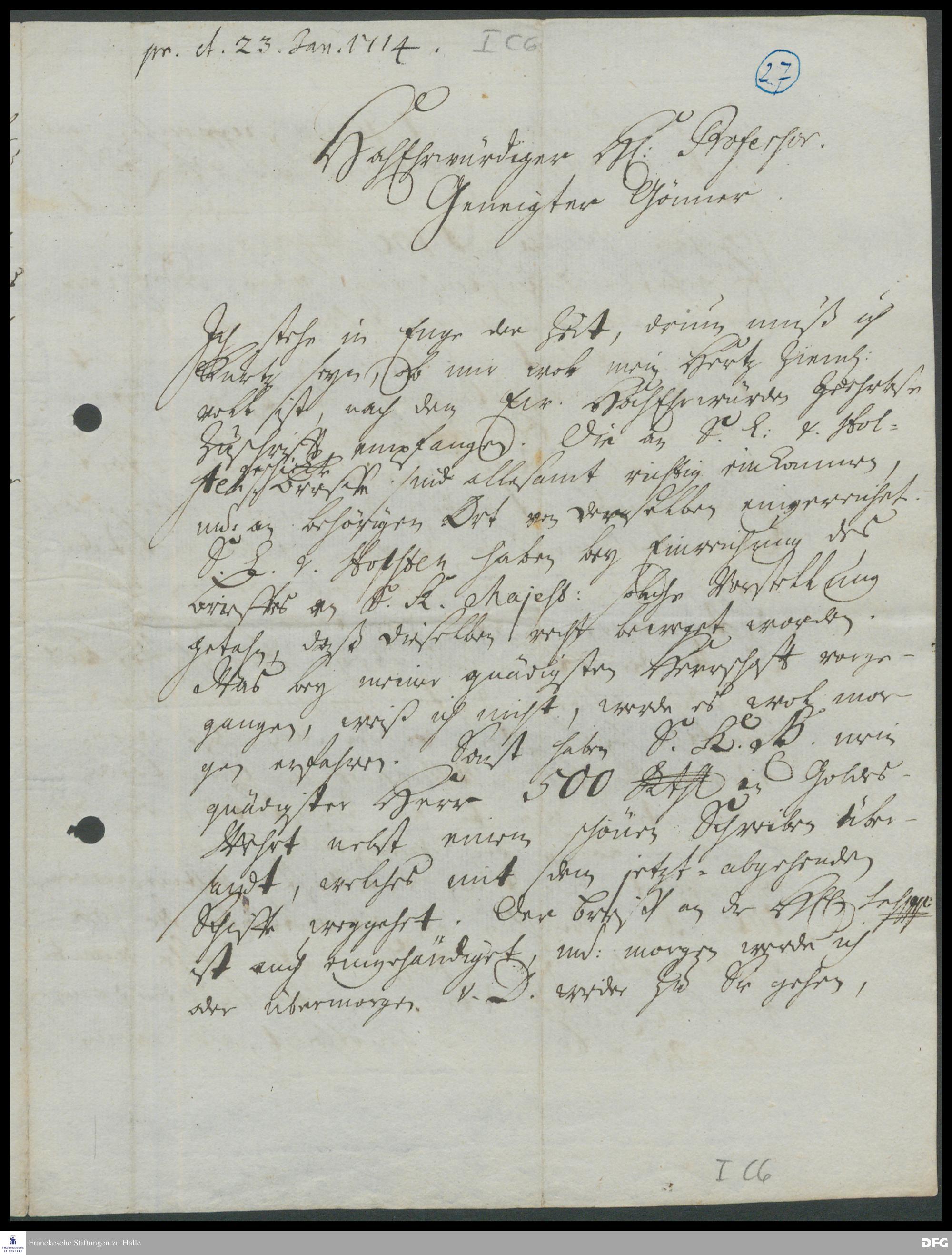 Brief von Christian Wendt an August Hermann Francke.